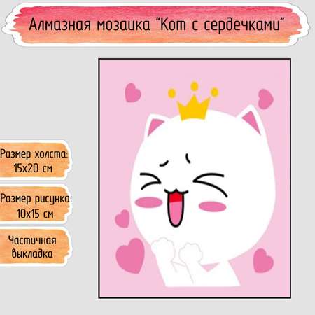 Алмазная мозаика Seichi Кот с сердечками 15х20 см