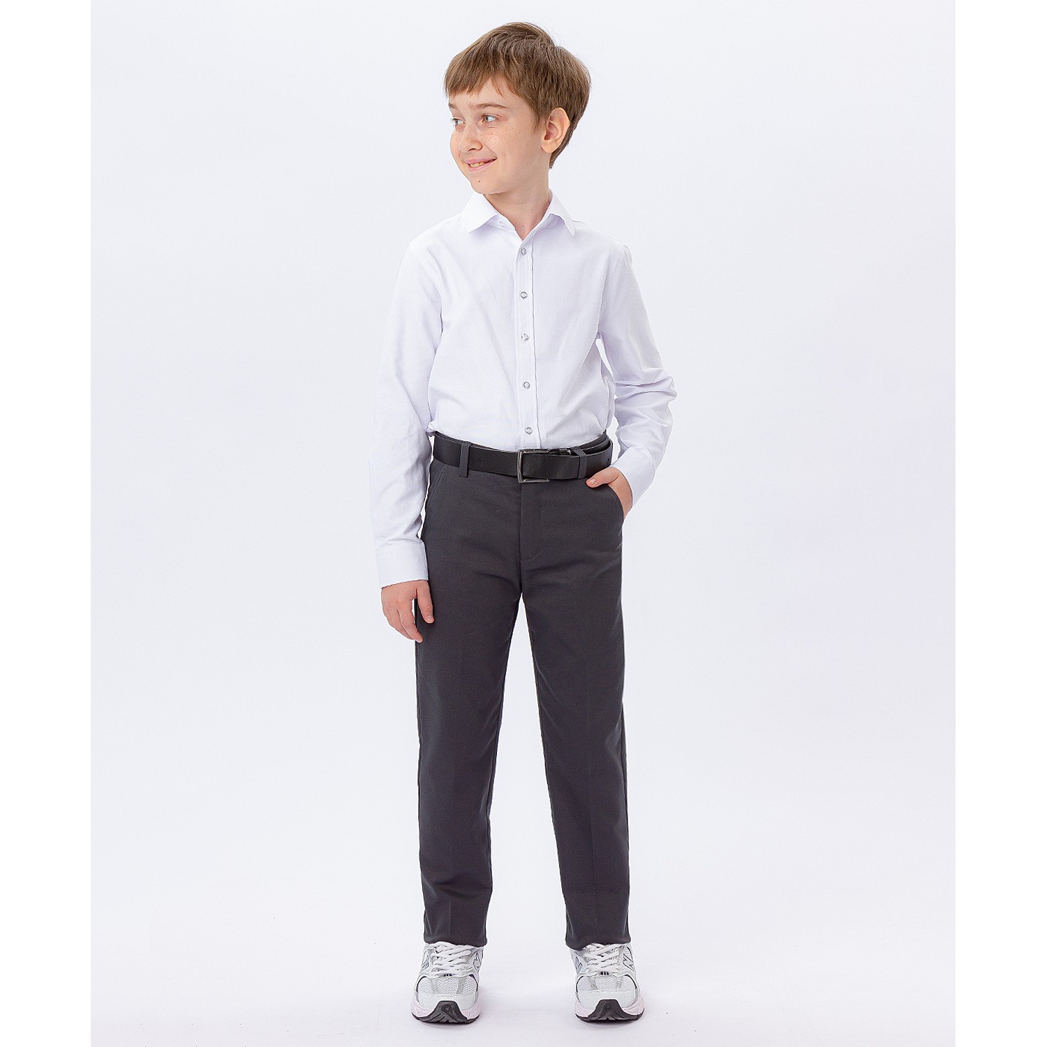 Школьные брюки серого цвета для мальчика. Модель застегивается на молнию и пуговицу. Для дополнительного удобства предусмотрена внутренняя утяжка по фигуре на поясе. Брюки прямого кроя со слегка сужающимися к низу штанинами будут стильно смотреться в образах и обеспечат максимальное удобство в каждодневной носке. Сзади и по бокам спереди расположены прорезные карманы. Пояс оснащен шлейками под ремень. Смесовый материал из хлопка и полиэстера является прочным, отличается легкостью в уходе и обеспечивает оптимальный теплообмен. Добавленный в состав эластан способствует оптимальной растяжимости и комфортной посадке по фигуре. Такой элемент школьной формы идеально комбинируется с любым верхом из коллекции Баттон Блю и позволяет создавать модные сочетания на День знаний, для выпускного, торжественных линеек и любых праздничных и повседневных мероприятий как в учебном заведении, так и за его пределами. Брюки для мальчика.