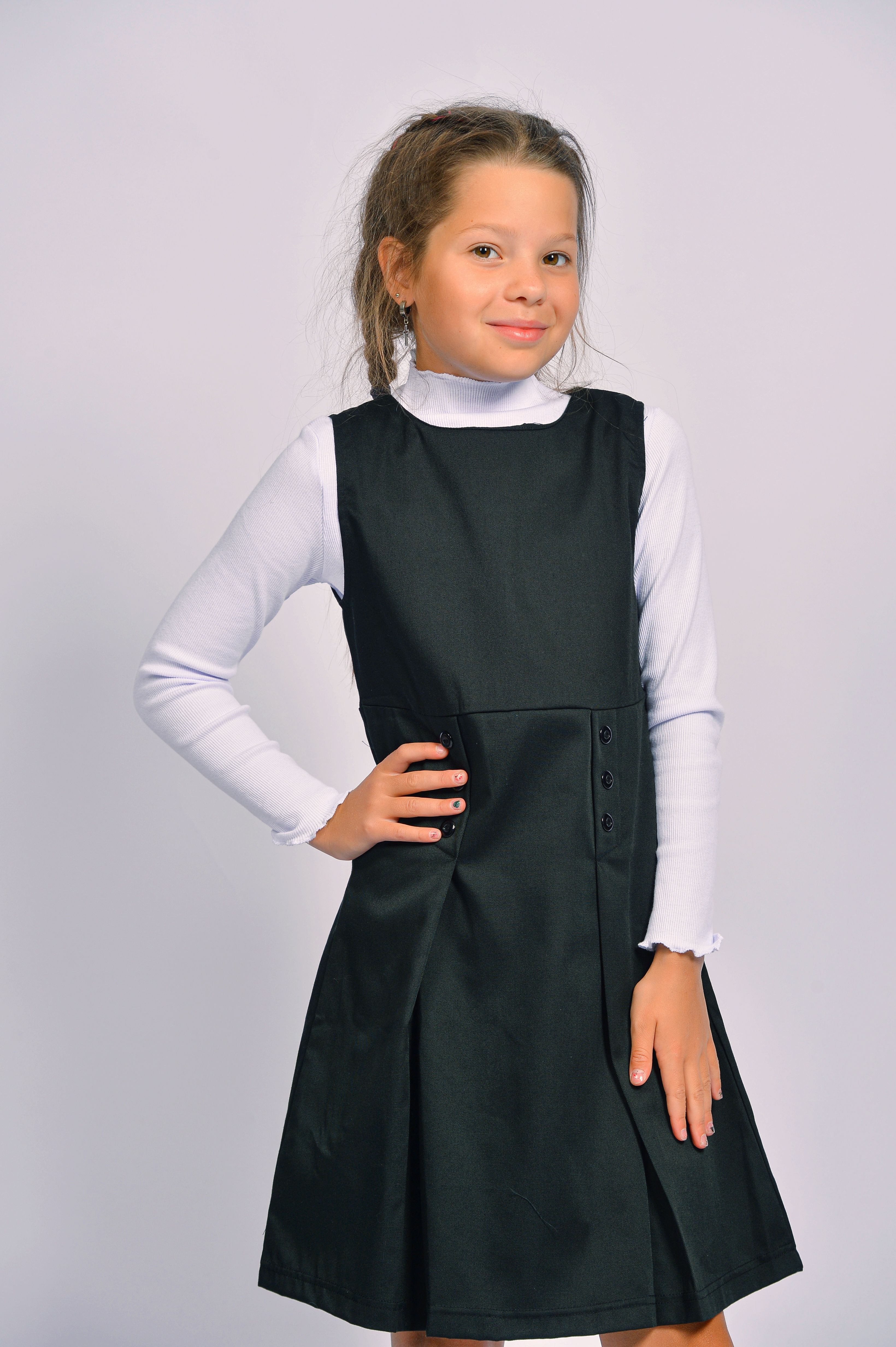 Черный школьный сарафан - это модная и стильная форма для девочек, которые хотят выглядеть красиво и аккуратно на учебе в школе. Он подходит для разных возрастов, так как доступен в различных размерах - и для девочки в начальных классах и для девушек старшеклассниц (с 6 до 17 лет и на рост от 128 до 164 см.). Классический сарафан на широких бретелях имеет приталенный крой и декорирован пуговицами на юбке, что делает его элегантным и молодежным. Подростковая модель выполнена без подкладки из качественной костюмной ткани. Платье идеально для повседневного ношения в школу. Оно будет отлично сочетаться с белой рубашкой, блузкой или водолазкой. Пуговица сзади добавит удобство и комфорт детям. Длина миди - примерно до колена. Классический черный наряд прекрасен на 1 сентября, либо выпускной и каждый день весь учебный сезон. Благодаря классической строгости, он подойдет как для занятий, так и для нарядного выхода на последний звонок или другие важные мероприятия. Сарафан школьный подходит как стильная повседневная школьная форма или на праздник для маленькой леди, бал, выступление. На изделиях не образуется зацепок и катышек.