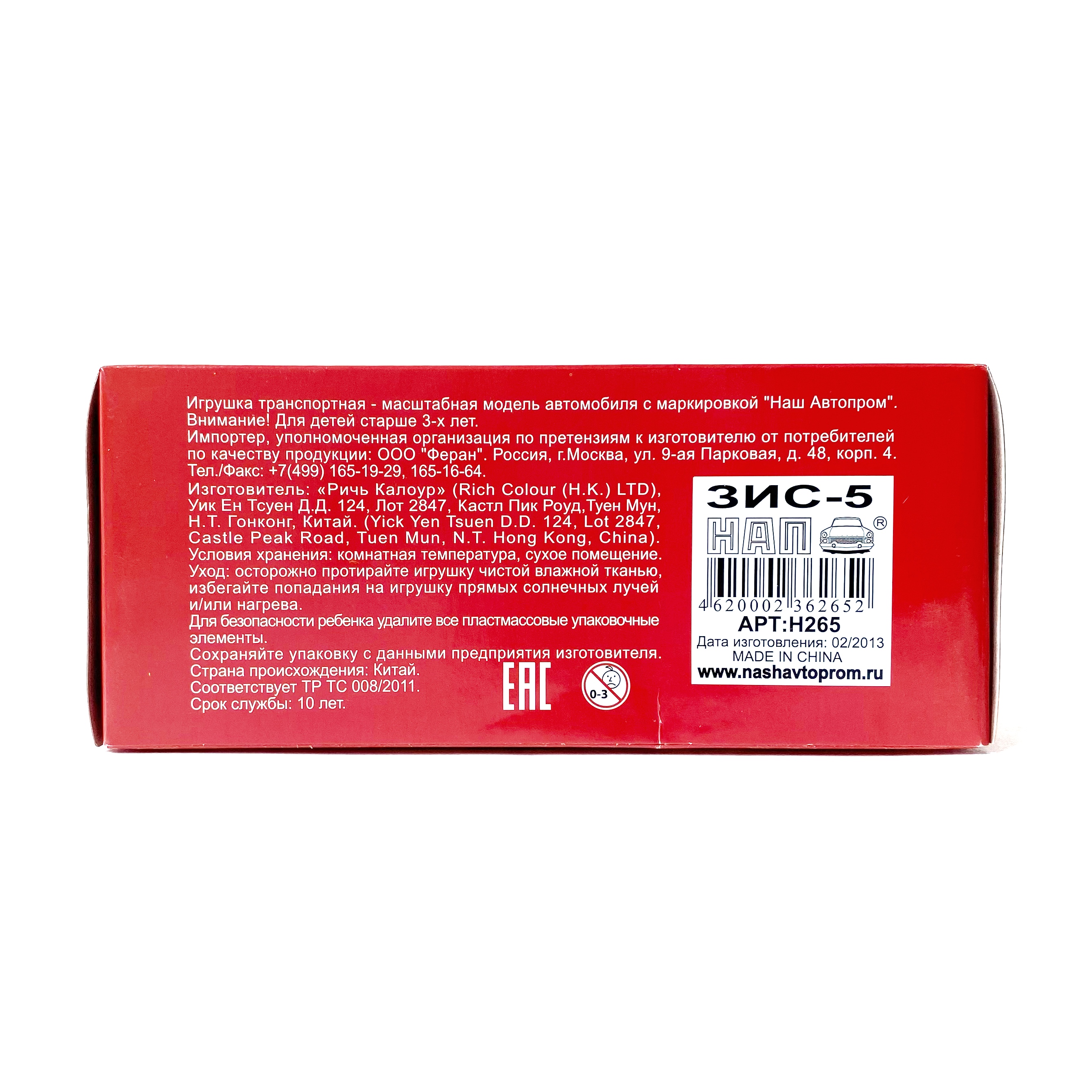 Модель выполнена в технологии die-cast, имеет высокую копийность и детализацию. Автомобиль ЗИС-5-советский среднетоннажный грузовой автомобиль грузоподъёмностью 3 т; второй по массовости (после ГАЗ-АА) грузовик 1930-х — 1940-х годов.