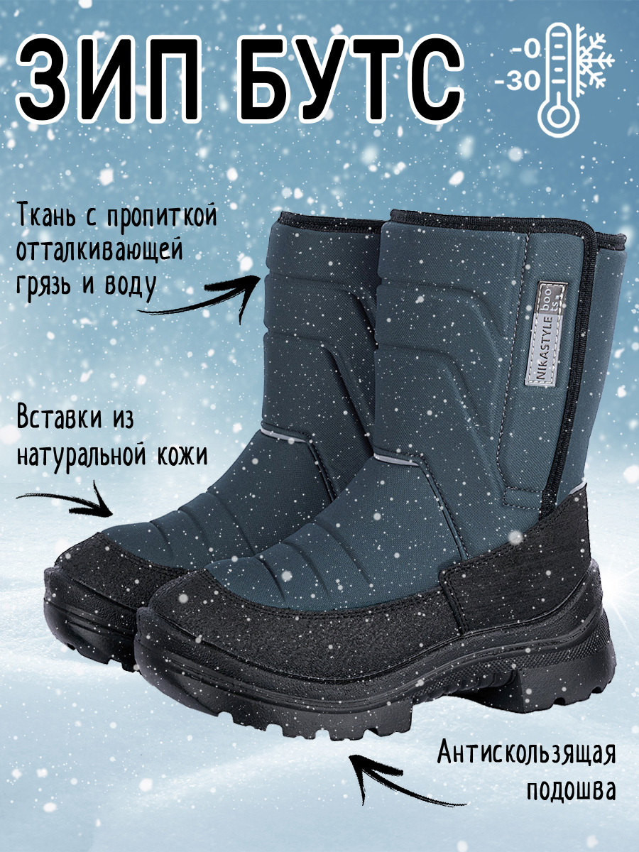 Детские зимние сапоги-дутики Зип бутс на литой высокой полиуретановой подошве с антискользящим протектором. Детские зимние сапоги-дутики Бутс на литой высокой полиуретановой подошве с антискользящим протектором. Зимние сапоги детские имеют следующий состав: Материал верха: 100% полиэстер + 100% натуральная кожа. Подкладка: 80% шерсть, 20% полиэстер. Подошва: 100% полиуретан. Преимущества ПУ подошвы: легкая, морозоустойчивая, гибкая и прочная. Материал верха зимних сапог— ветронепродуваемый текстиль с грязе- водоотталкивающей пропиткой. Детские зимние сапоги с подкладкой из шерсти изготовлены из прочного дышащего материала, что обеспечивает климат контроль и комфорт по время использования. В детских сапогах предусмотрена регулировка объема липучкой. Валенки детские имеют кожаные вставки с влагостойкой пропиткой. Подкладка в зимних сапогах из натуральной шерсти. Непромокаемые зимние сапоги для мальчика с меховой съемной 3-х слойной стелькой (шерсть +фольга +войлок) со специальной петлей для удобства вынимания. Фольга в стельке сохраняет тепло и препятствует образованию конденсата. Ботинки зимние для мальчика имеют светоотражающие элементы. Зимние сапоги на высокой подошве легкие, теплые, непромокаемые. Температурный режим до -30. Гарантийный срок 30 дней. Рекомендуем приобрести комплектом аксессуары, теплую зимнюю верхнюю одежду-, шапку зимнюю, варежки зимние детские, термобелье и другие вещи из капсулы в карточке товара, которые отлично сочетаются с изделиями коллекции. В данных теплых сапогах малышу мальчику девочке ребенку подростку будет комфортно как на прогулке в детском саду, школе, так и при занятии спортом – катании на лыжах, коньках, санках, игре в хоккей. Детские зимние сапоги подойдет для урока физкультуры в зимнее время года, которые можно сочетать с шапкой и зимним комбинезоном NIKASTYLE. В данных зимних сапогах комфортно катание на детских горных лыжах и сноуборде с универсальными креплениями. Многофункциональные детские зимние сапоги NIKASTYLE – лучшая зимняя обувь для вашего ребенка.