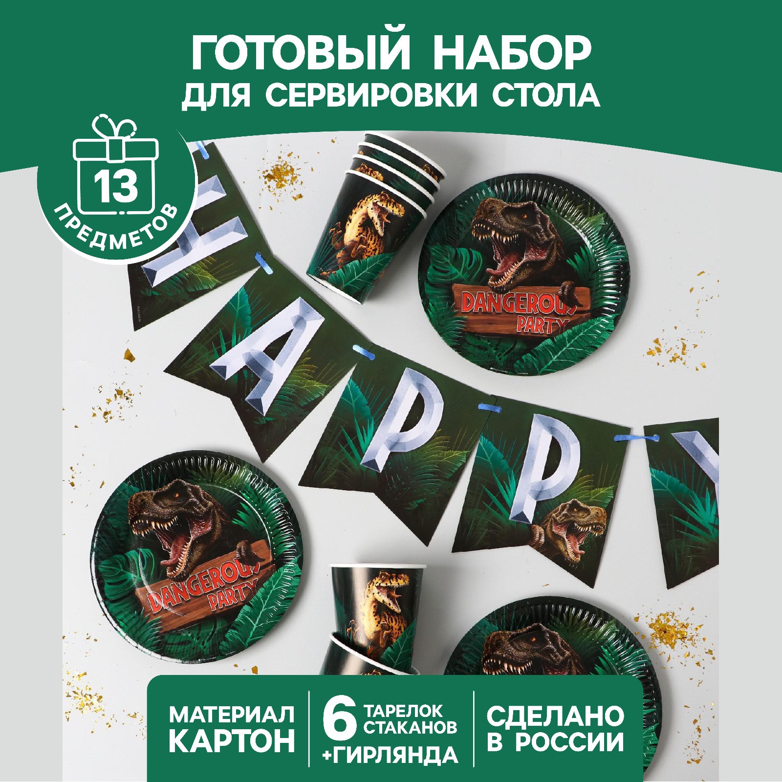 Цена на Набор бумажной посуды Страна карнавалия Dangerous party 6 тарелок 6 стаканов 1 гирлянда - 383 ₽.