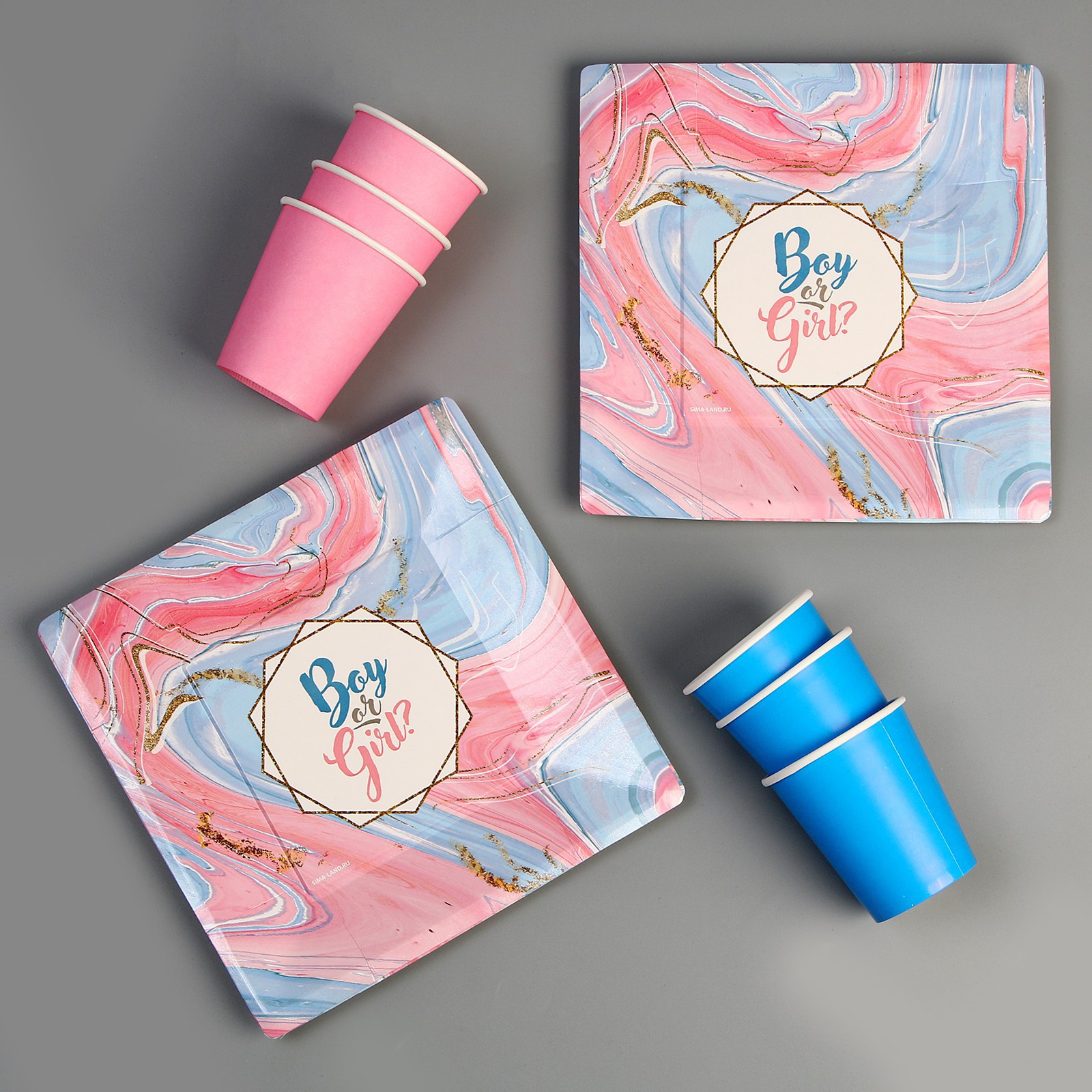 Набор посуды Страна карнавалия «Мальчик или девочка» квадрат стаканы 6 шт. тарелки 6 шт.