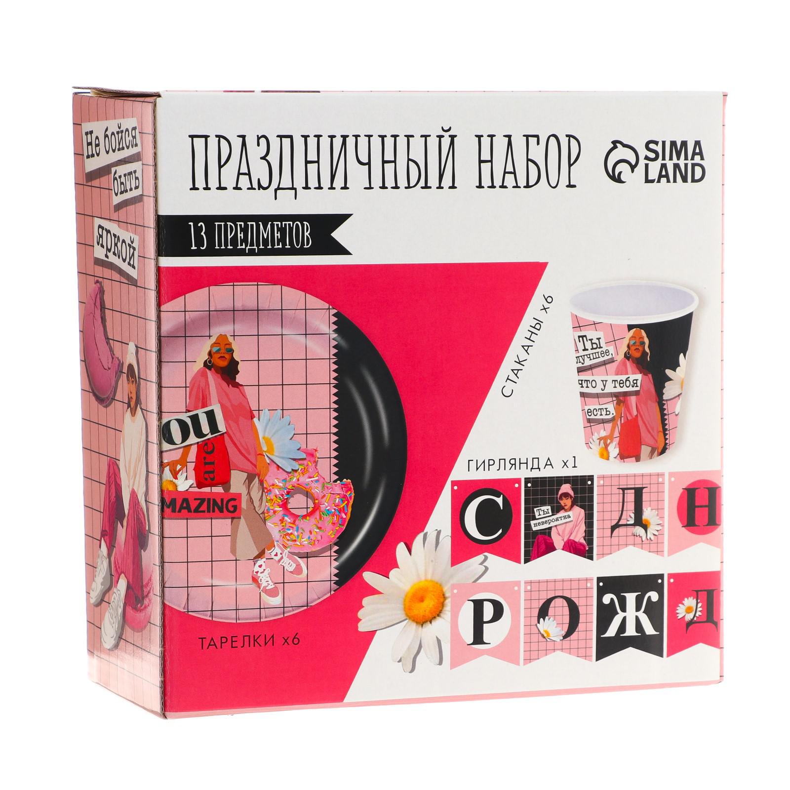 Набор бумажной посуды Страна карнавалия «Ты лучшая» 6 тарелок 6 стаканов 1 гирлянда