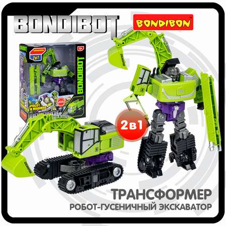 Трансформер BONDIBON BONDIBOT 2в1 робот- гусеничный экскаватор зелёного цвета