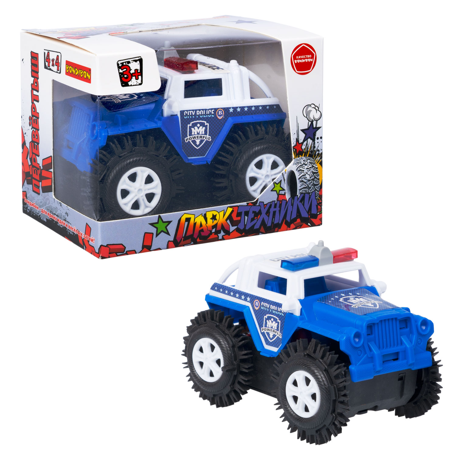 Машина – Джип перевертыш из серии Парк Техники от Bondibon — это уникальная детская игрушка, которая сочетает в себе функциональность вездехода, маневренность дрифт- кара и возможности трюкового монстр кара. Внедорожник в синем цвете на больших колесах – идеальный компаньон для сюжетно-ролевой игры! Быстрая и маневренная машина займет достойное место в коллекции маленького автолюбителя!