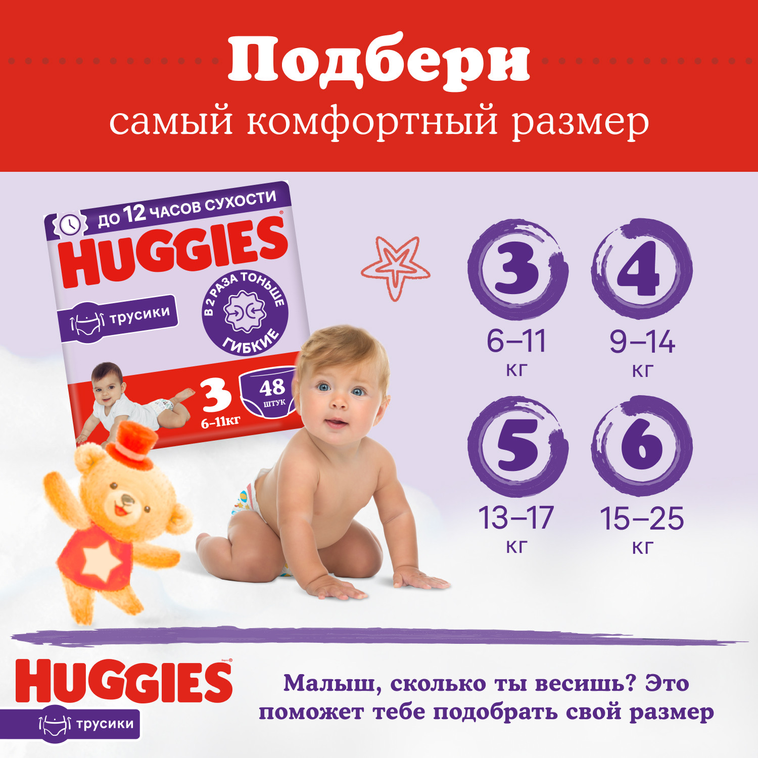 Новые супертонкие подгузники-трусики Huggies созданы специально для максимального комфорта вашего ребенка 24/7. Универсальный дизайн с милыми мишками Huggies подойдет как девочке, так и мальчику. Современные материалы, использованные при создании трусиков Huggies для мальчиков и девочек, мгновенно впитывают и удерживают влагу внутри надолго.