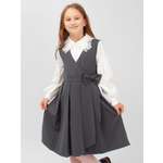 Сарафан школьный для девочки "Соль&ПЕрец". Стильный школьный сарафан из плотного трикотажа с запахом и подкладкой для девочки. Нарядный сарафан с юбкой в складку декорирован бантиком из основной ткани. Детский сарафан комфортен в носке, подойдет под любую блузку, водолазку, кофту или футболку как для повседневной носки в школу, так и для праздника. Материал износостойкий, одежда из него не сильно мнется, не образует катышков, легка в уходе: отлично стирается и сушится в машине, не требует тщательной глажки – достаточно стряхнуть и повесить на плечики.