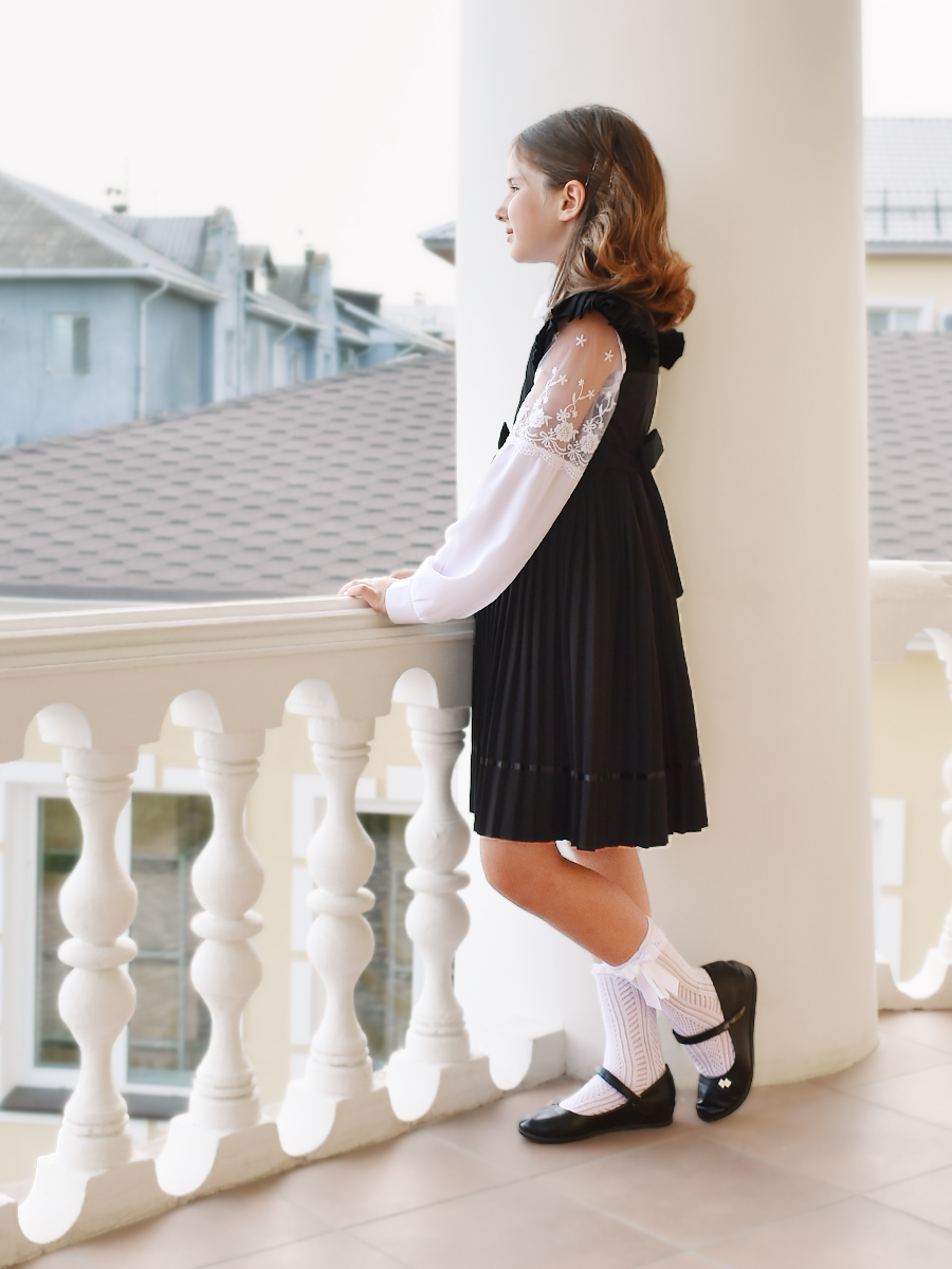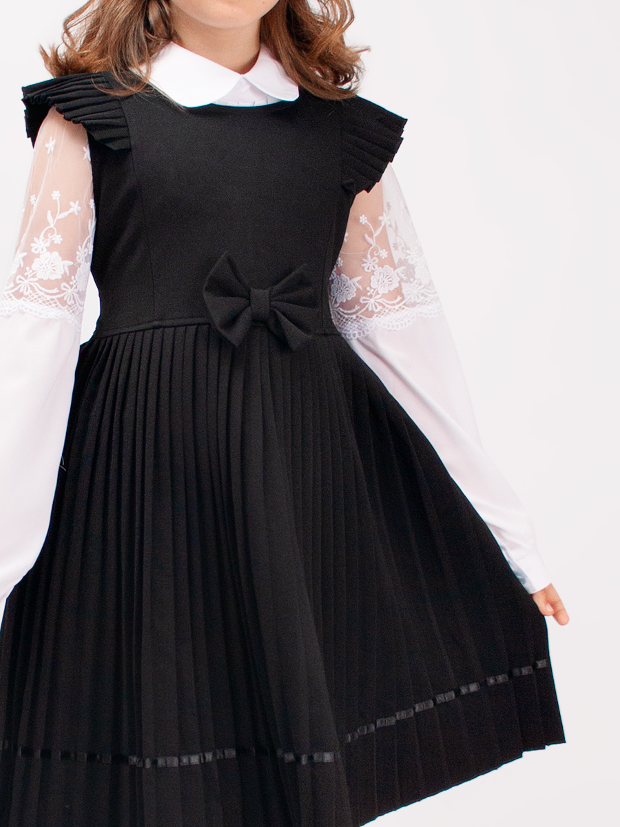 Создайте безупречный школьный образ для вашей маленькой леди! Сарафан "Соль&Перец" — это гармония элегантного стиля, безупречного качества и повседневного комфорта. Модель с плиссированной юбкой и акцентными деталями в виде бантика и крылышек из основной ткани станет любимой вещью в гардеробе и универсальным решением для школьных будней и торжественных мероприятий.