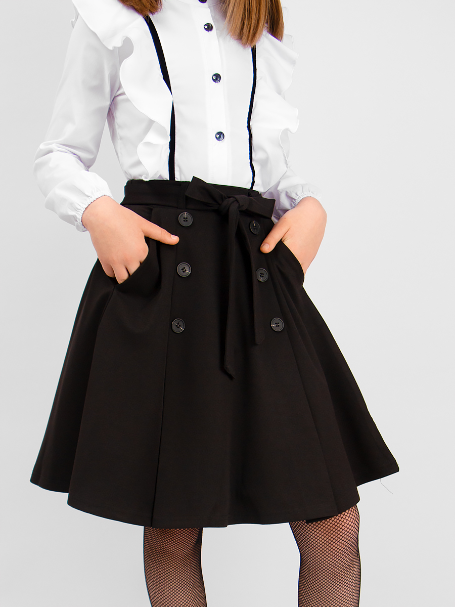 Юбка школьная для девочки в стильном солнце-клёш силуэте со складками "Соль&Перец" - лучший выбор для маленьких модниц. Юбка сшита из плотного струящегося трикотажа. Такая нарядная юбка отлично подойдет как на каждый день, так и на школьные и не только праздники. Украшенная пуговицами, юбка имеет съемный пояс, завязывающийся в красивый бант. Скрытая резинка в поясе для регулировки обеспечит идеальную посадку на любую фигуру. Базовый цвет пышной юбочки позволит носить ее как в школу, так и в повседневной жизни, а также на праздники и официальные мероприятия.