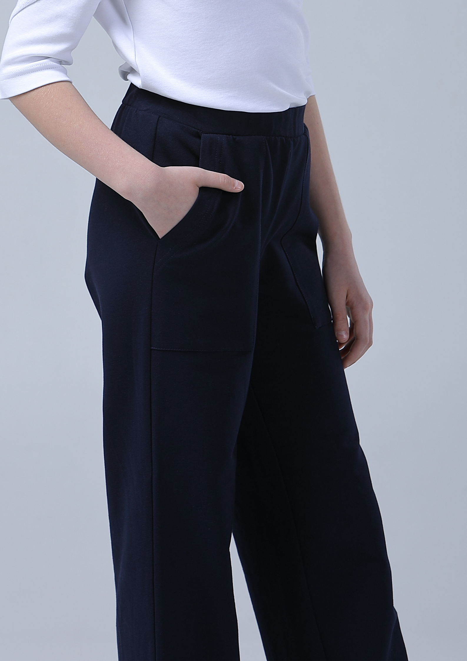 Школьные брюки палаццо для девочки — это стильное и практичное решение для учебного гардероба. Эти трикотажные брюки с высокой посадкой и карманами идеально подходят для активных школьных дней, а также внеучебной деятельности. Мягкий, эластичный и приятный на ощупь материал обеспечивает не только комфорт, но и долговечность. Он обладает высокой износостойкостью, не закатывается и долго сохраняет свою первоначальную форму, что делает эти брюки отличным выбором для повседневного ношения.