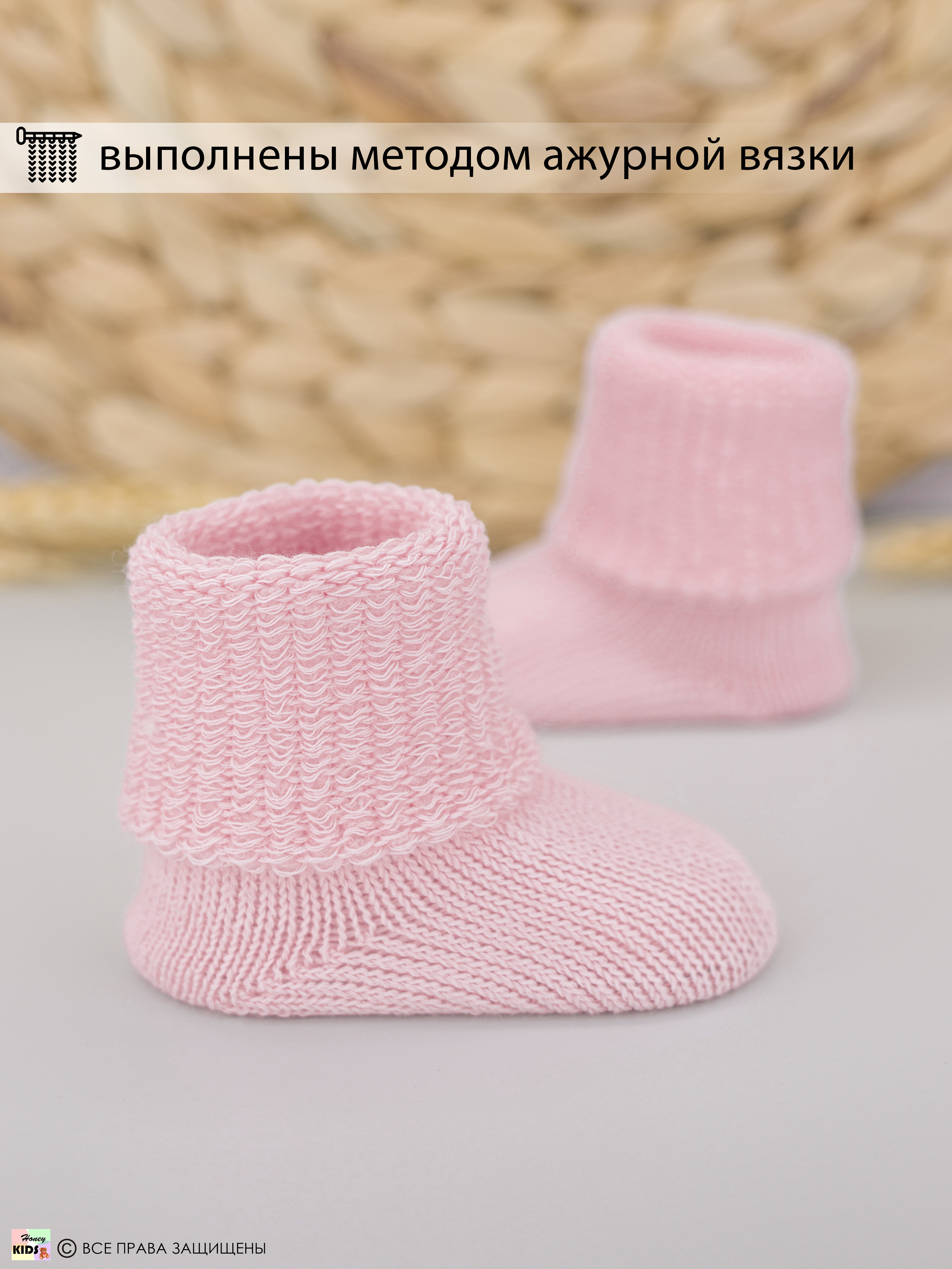 Детские хлопковые носки для новорожденных, малышей и детей, с отворотом и без резинки. Крупная дышащая вязка, натуральные материалы. Выполнены методом ажурной вязки. Данная модель детских носков не перетягивает ножку и и создает дополнительный комфорт при ношении и во время сна. Хорошо тянутся, мягкие и приятные на ощупь. Комплект представлен в разных цветах.