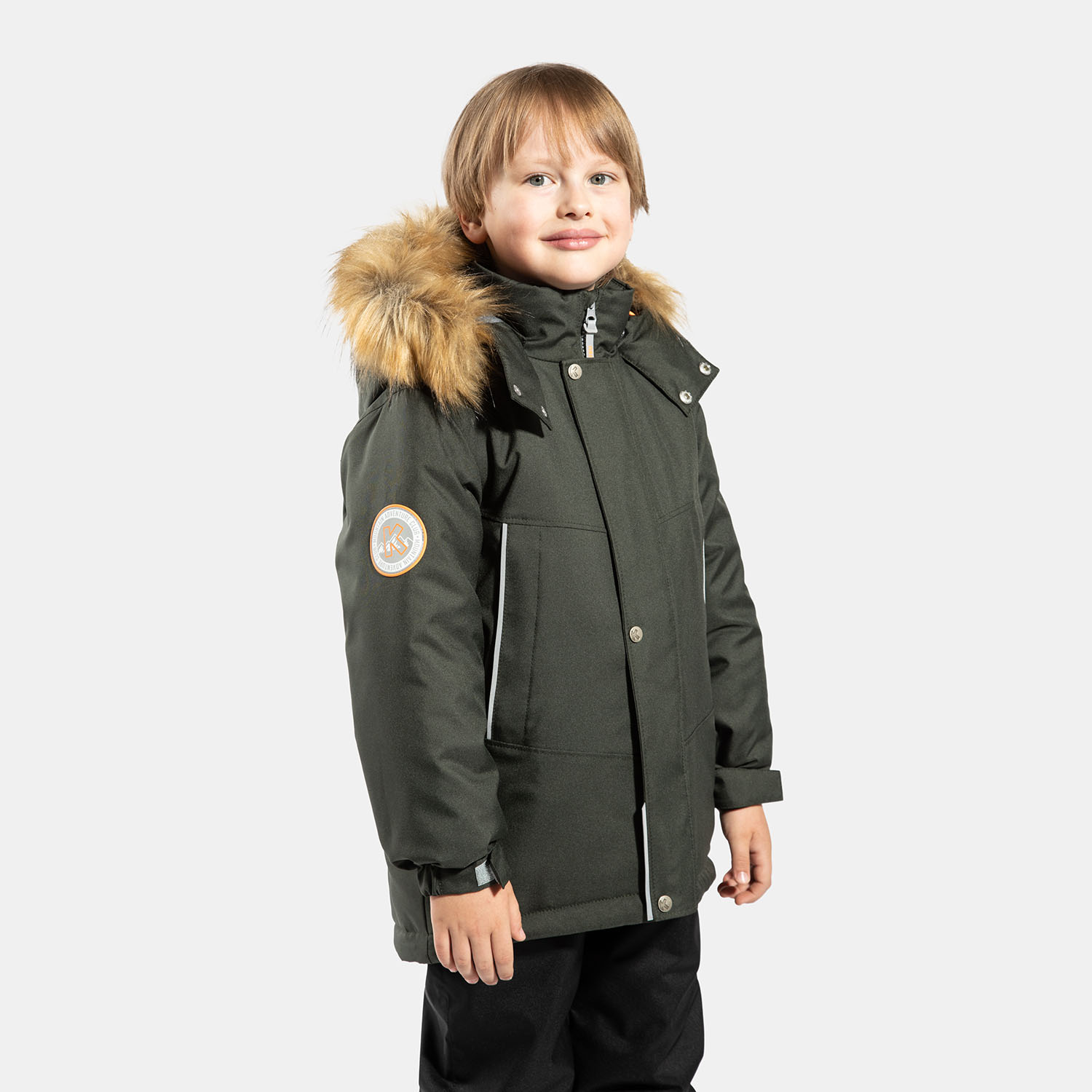 Зимняя куртка для мальчиков в классическом стиле из ткани с мембраной 5000/5000 и специальным грязеотталкивающим покрытием. Благодаря современному утеплителю Shelter 300 г/м2 куртка эффективно сохраняет тепло, быстро сохнет и не деформируется даже при частых стирках. Рекомендуемый температурный режим от +5 до -30°C. Куртка со съемным капюшоном, защищающим от пронизывающего ветра благодаря регулировке по глубине и утяжке по объему. Съемная опушка выполнена из искусственного меха. Центральная молния закрыта ветрозащитной планкой на кнопках. Предусмотрен ограничитель молнии для защиты подбородка. Внешние карманы застегиваются на молнии, внутренний - на липучку. Подкладка капюшона, манжеты и стойки воротника выполнена из велюра, верхняя часть подкладки полочки и спинки выполнены из специального теплосохраняющего материала. Регулировка манжет липучкой. Регулировка по линии низа для плотного прилегания (кулиска). Светоотражающие элементы куртки повышают видимость ребенка в темное время суток. Уход - машинная стирка при низких температурах (30-40°C). Стирать отдельно от других вещей, застегнув молнии и липучки, при этом вывернув изделие на изнанку. Использовать жидкий порошок или специальные средства для стирки мембранных тканей без отбеливателя в составе. Не использовать кондиционер. Удобная и практичная модель подходит как для школы и сада, так и для активных игр на улице. Для точного выбора размера рекомендуем обратиться к таблице измерений на фото.
