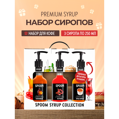 Набор сиропов SPOOM Кленовый Острый Крем-брюле для коктейлей чая и кофе 3шт 250мл + 3 дозатора