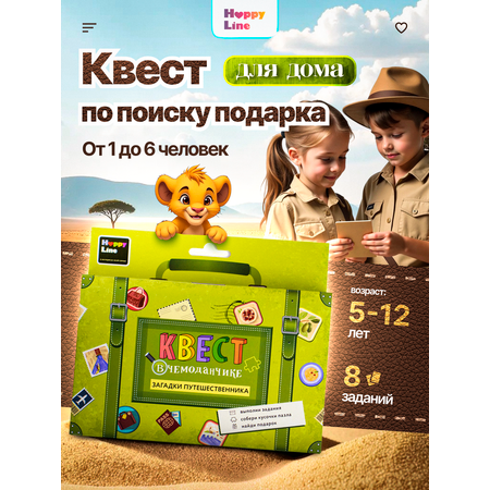 Яркая идея для родителей, как преподнести подарок детям в необычном формате. Предлагаем не просто вручить подарок, а сделать из этого настоящее приключение. С нашим квестом "в чемоданчике" это будет увлекательно и просто! Для подготовки понадобится 15 минут. Мы рекомендуем квест детям от 5 до 12 лет, но все индивидуально. Проходить квест можно компанией до 4 человек. Квест состоит из 8 конвертиков с заданиями, которые Вы вручаете ребёнку по очереди. Каждый конверт содержит кусочек пазла. Выполнив задания, ребёнок соберет пазл и на обратной стороне прочитает, где спрятан подарок. Подарок Вы готовите и прячете в потайное место заранее. Загадки путешественника для тех, кто готов побывать в древнем Египте, позавтракать хрустящим круассаном во Франции, увидеть могучий символ Китая, разгадать кроссворд об Италии, прокатиться по горнолыжным трассам во Франции, изучить японские иероглифы, проучить обезьян-воришек в Таиланде. Квест бокс включает: инструкцию; вводную карточку; 8 писем-конвертиков с интересными заданиями; тематический пазл из 8 элементов, с обратной стороны которого нужно вписать то заветное место, где спрятан подарок; стикеры наклейки для заклеивания конвертиков и для подсказок (стрелочки). Для подготовки понадобится 15 минут. В каждое письмо-конвертик вкладывается элемент пазла. Далее Вы прячете конвертики в места согласно инструкции. Мы рекомендуем взрослым заранее самим пройти квест и перед началом проведения объяснить детям, что важно искать конвертики с пазлами по очереди, так не возникнет неловких моментов в сюрпризе. Каждый квест в чемоданчике сам может стать оригинальным подарком. Квест на День Рождения подарит массу позитивных эмоций. Квесты для детей – это не только весёлое времяпрепровождение, но ещё и полезное. Ребёнок получает новые знания, тренирует логическое мышление, счет, чтение. Мы рекомендуем квесты в первую очередь детям, которые уже умеют читать. Если ребёнок только учится читать, понадобится активная помощь взрослых.