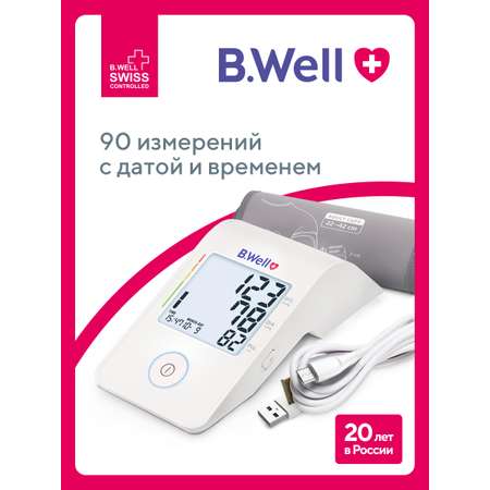 Тонометр B.Well MED-53+USB-кабель,универсальная манжета 22-42см.Контроль точности:прибор подскажет,правильно ли надета манжета.На точность измерения влияет правильное расположение манжеты и техника измерения давления.Специальный значок на дисплее сигнализирует,что манжета надета правильно.Цветная шкала уровня давления подскажет уровень измеренного давления.Индикатор аритмии позволяет выявить нарушения сердечного ритма на ранней стадии.Технология Intellect Active обеспечивает быстрое и бережное измерение.Алгоритм позволяет провести измерение не только точно и быстро, но максимально комфортно.Конусная манжета удобна при надевании, так как ложится по форме руки.Универсальная манжета M-L для обхвата руки 22-42см удобна для всех членов семьи.Полноценный контроль давления:память на 90 измерений с отметкой даты и времени.Съемный чехол манжеты.Удобная сумка для хранения в комплекте.Индикатор разряда батареи.Автоматическое отключение.USB-кабель в комплекте.Подойдет адаптер от любого смартфона.