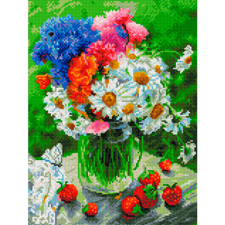 Алмазная мозаика Белоснежка «Дачные цветочки» . На подрамнике . Мозаика 30 х 40 см . Ягоды . Ваза