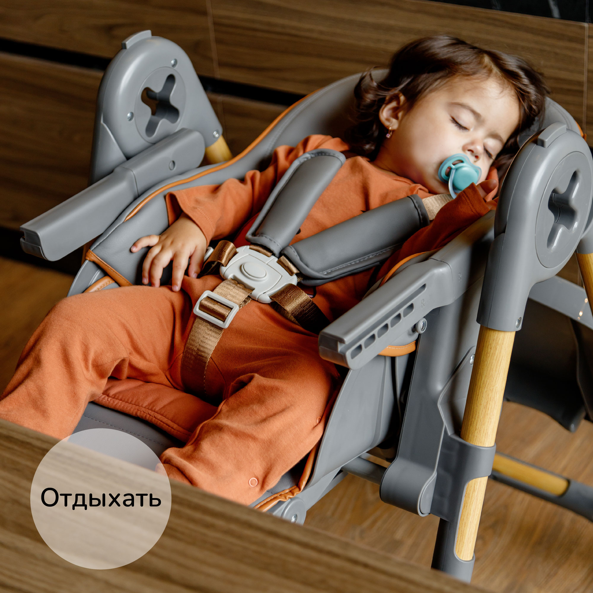 Чтобы обеспечить безопасность вашего ребенка, стул для кормления младенцев оснащен 5-ти точечным ремнем, который надежно фиксирует его во время кормления.