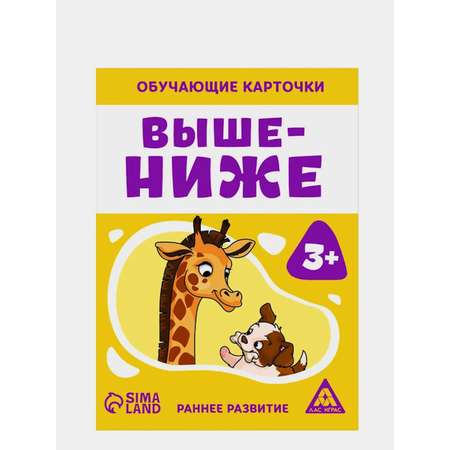 Обучающие карточки позволят малышу в раннем детстве познакомиться с понятиями «выше» и «ниже». Также карточки помогут ребёнку развить память, интеллект, зрительное и слуховое восприятие. Подавайте новый материал в игровой форме, так он быстрее и легче усваивается.