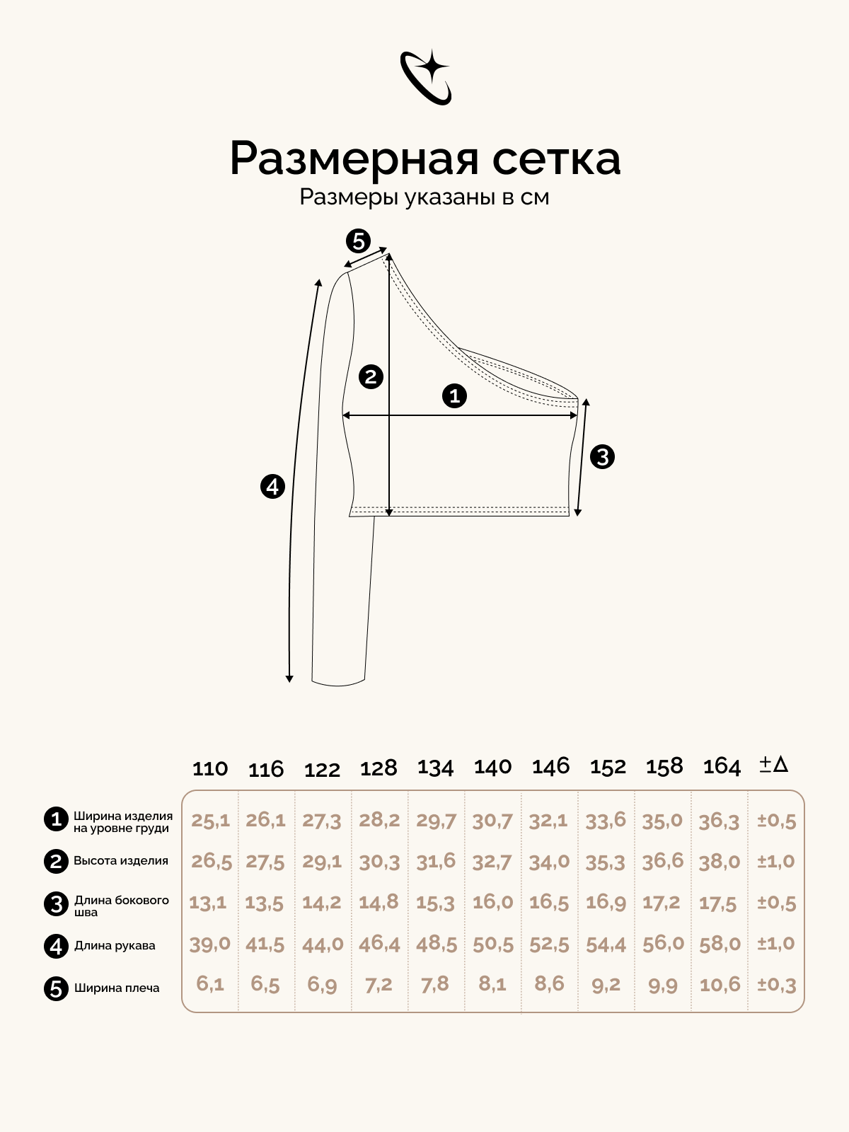 Новинка от бренда Crimea Baby - модный и современный топ с рукавом на одно плечо. Эта базовая вещь гардероба идеально подходит на любой сезон: лето, осень, зима, весна. Отлично сочетается как с брюками, так и с джинсами, и джоггерами, помогая создать множество оригинальных образов. Мягкая плотная хлопковая ткань не будет просвечивать, и ребенку будет комфортно ходить целый день. Также в нем можно ходить на тренировки или занятия танцами. Хлопковый кроп топ в рубчик с рукавом на одно плечо точно привлечет к себе внимание. Наличие лайкры в материале позволяет материалу тянутся, поэтому данный предмет гардероба отлично сядет на девочку любой комплекции. Круглый вырез, приятный к телу трикотаж и облегающая посадка делает модель удобной и комфортной в носке, и ощущается практически как вторая кожа. В зависимости от дополнительных слоев одежды трикотажный кроптоп с открытым плечом можно использовать в любую погоду при любом климате. Универсальный черный цвет отлично впишется в любой гардероб. При соблюдении рекомендаций к стирке ткань не выцветает, не садится и не вытягивается.