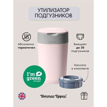 Tommee Tippee утилизатор подгузников, накопитель для использованных подгузников Twist & Click в комплекте с кассетой. Утилизатор для использованных подгузников Twist & Click — единственный в мире накопитель для использованных подгузников, который может скручивать и индивидуально заворачивать каждый подгузник, надежно изолируя запахи и сохраняя Ваш дом в свежести и чистоте. Для работы утилизатора необходимы кассеты. Преимущества: Экологичность. Утилизатор, накопитель для использованных подгузников Twist & Click и сменные кассеты - на 98 % изготовлены из полностью перерабатываемого пластика. Многослойная антибактериальная пленка изготовлена на биологической основе из экологически чистого сахарного тростника GREENFILM™ Гарантированная защита от запахов и микробов. Подгузники индивидуально завернуты в многослойную антибактериальную пленку, которая блокирует запахи и микробы. Антибактериальная пленка убивает 99% опасных микробов при контакте, поэтому бактерии и запахи не могут проникнуть наружу, обеспечивая Вам гарантированную защиту каждый раз, когда Вы выбрасываете подгузник. В интерьере. Компактный утилизатор удобно впишется в любую комнату. Он вмещает до 30 подгузников одновременно (зависит от размера подгузника), что означает меньше походов к мусорному ведру. Плоская крышка открывается у любой стены, что упрощает установку и использование утилизатора. Комплектация. Данный артикул ведра-утилизатора поставляется с одной предварительно загруженной сменной кассетой. Что из себя представляет кассета: Материалы кассеты, включая пленку - 100% биоразлагаемы. Многослойный антибактериальный материал GREENFILM™ в 100 раз эффективнее обычных пакетов для подгузников, поскольку он защищен биоцидом серебра Biomaster (антибактериальная защита присутствует только в пленке. Пленка обработана биоцидом серебра Biomaster, протестированным в соответствии с ISO 22196-2011) и уничтожает 99 % опасных микробов, таких как E-coli и Staphylococcus Aureus. Умная герметичная крышка задерживает все неприятные запахи, а встроенный поршень проталкивает подгузники глубоко в утилизатор, сохраняя ваши руки в чистоте. Кассета рассчитана в среднем на 66 подгузников (зависит от размера подгузника) Важное дополнение. Система утилизации подгузников Twist & Click совместима только со сменными кассетами Tommee Tippee Twist & Click.