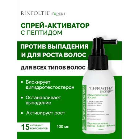 Уникальный мультикомпонентный состав лосьона активатора роста волос Ринфолтил подходит для любого типа кожи головы, в том числе чувствительной. В составе лосьона активные компоненты с доказанной эффективностью против выпадения и для роста волос: