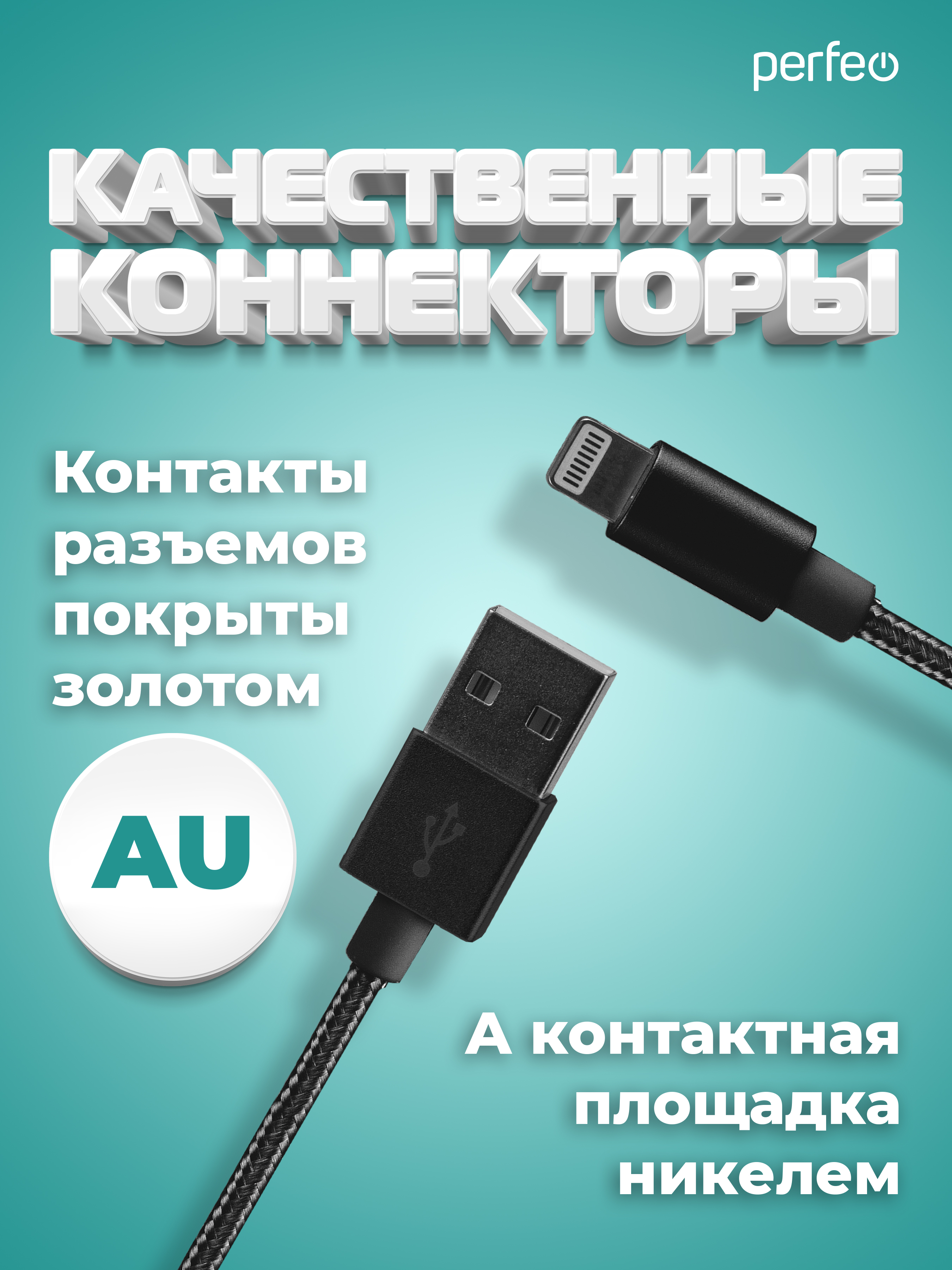 Кабель Perfeo для iPhone USB - 8 PIN Lightning черный длина 3 м. I4304