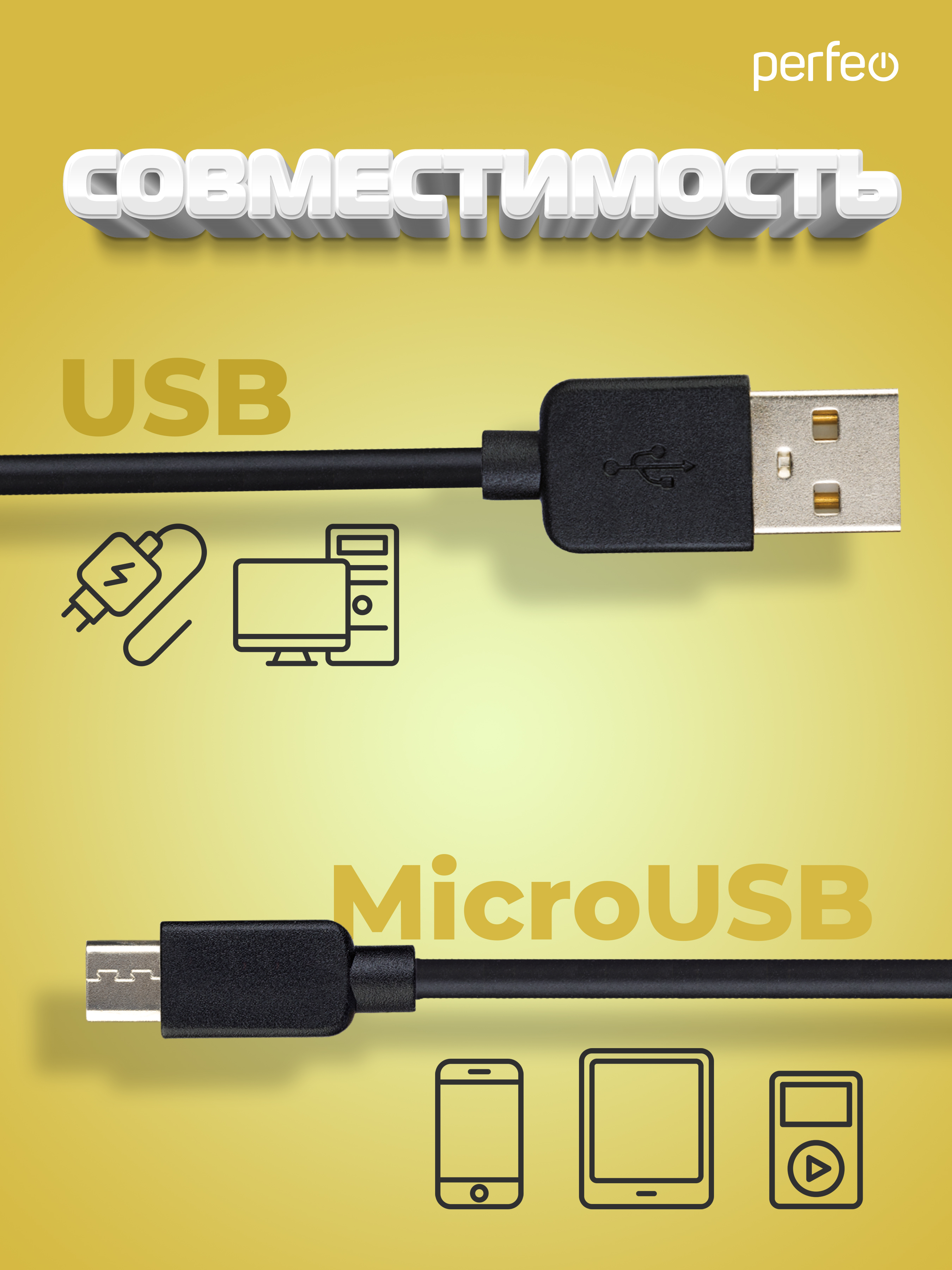 Цена на Кабель Perfeo USB2.0 A вилка - Micro USB вилка черный длина 1 м. бокс U4006 - 200 ₽.