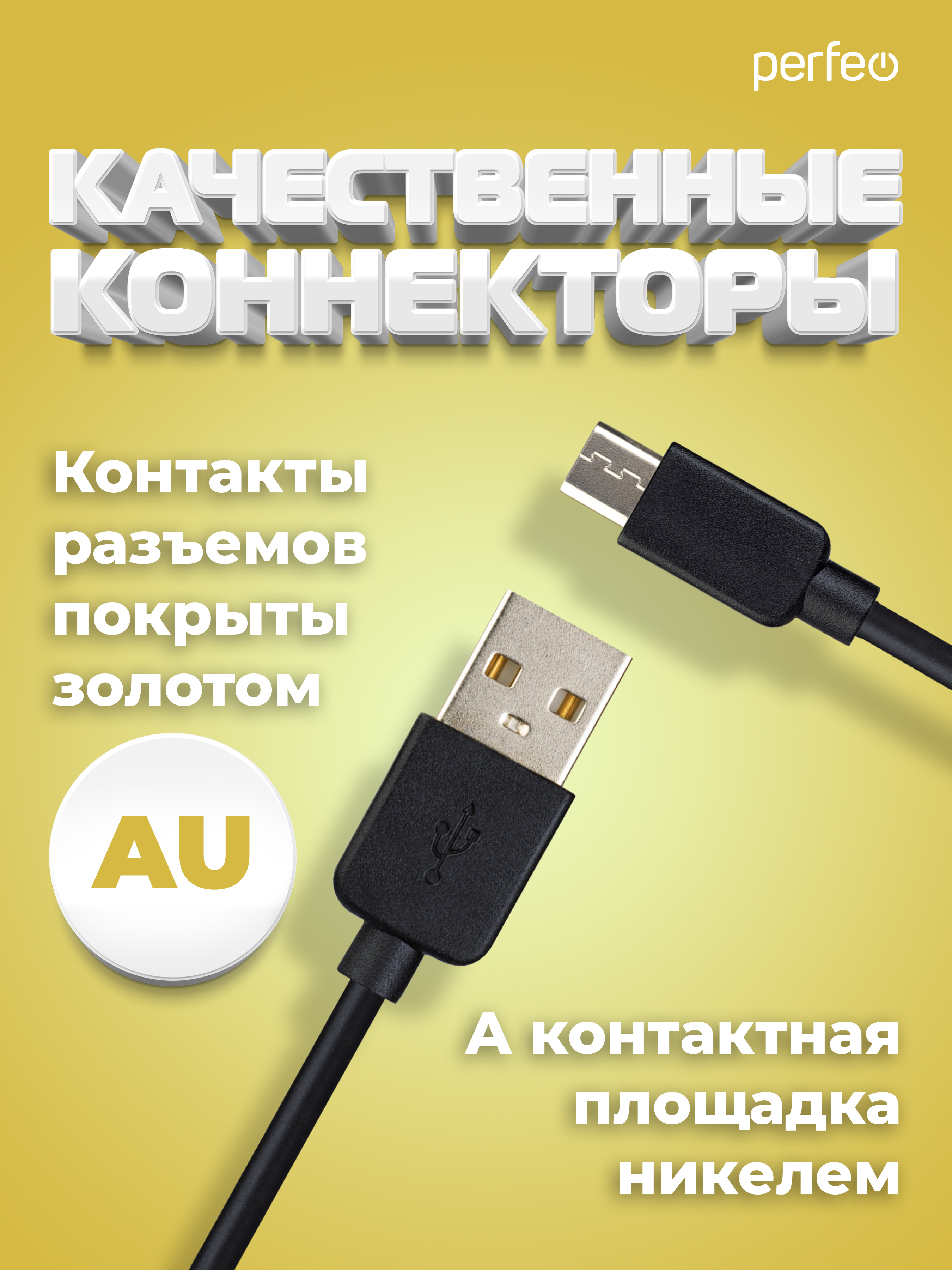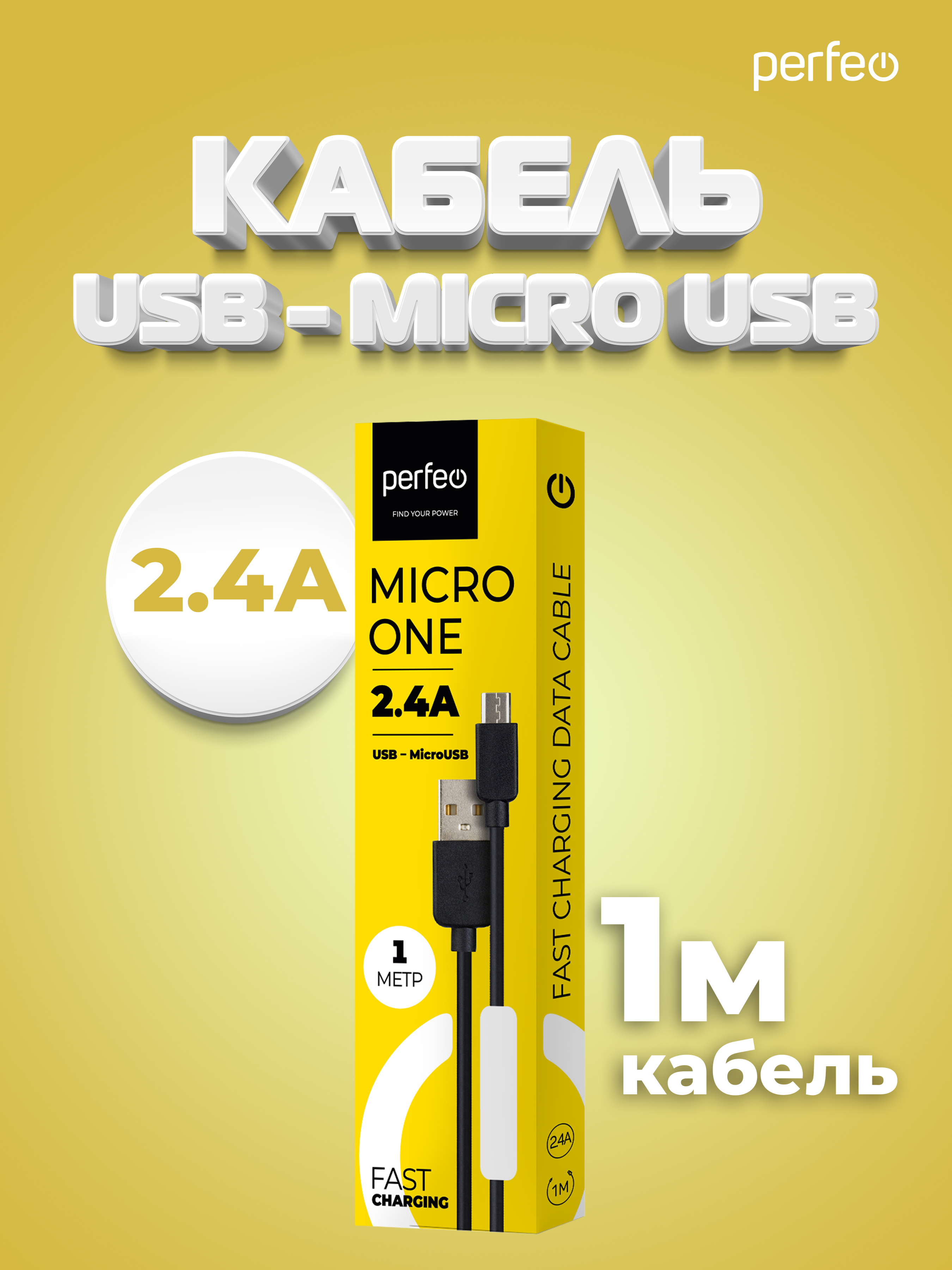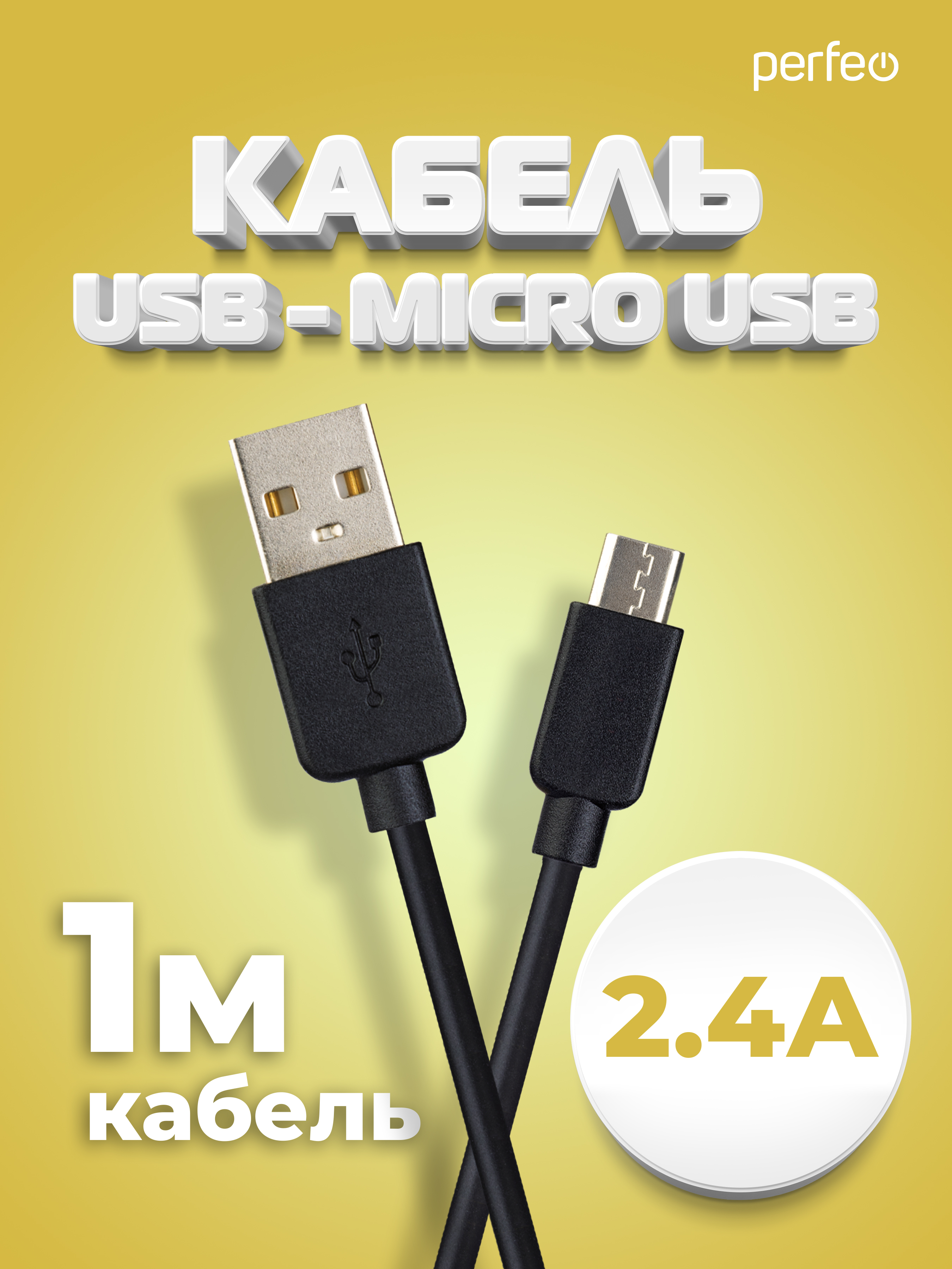 Кабель Perfeo USB2.0 A вилка - Micro USB вилка черный длина 1 м. бокс U4006