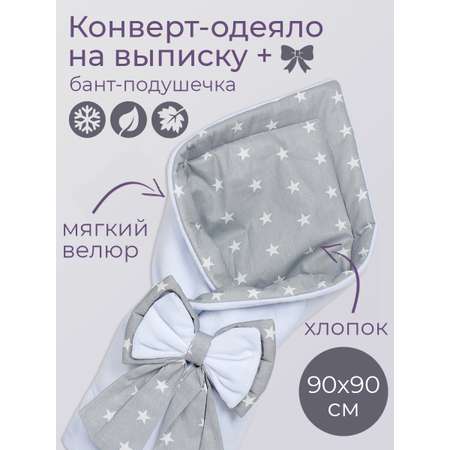 Конверт-одеяло Чудо-чадо на выписку для новорожденного Плюша белый/звездочки