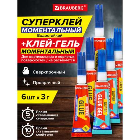 Клей Brauberg гель 3 штуки + супер клей 3 штуки