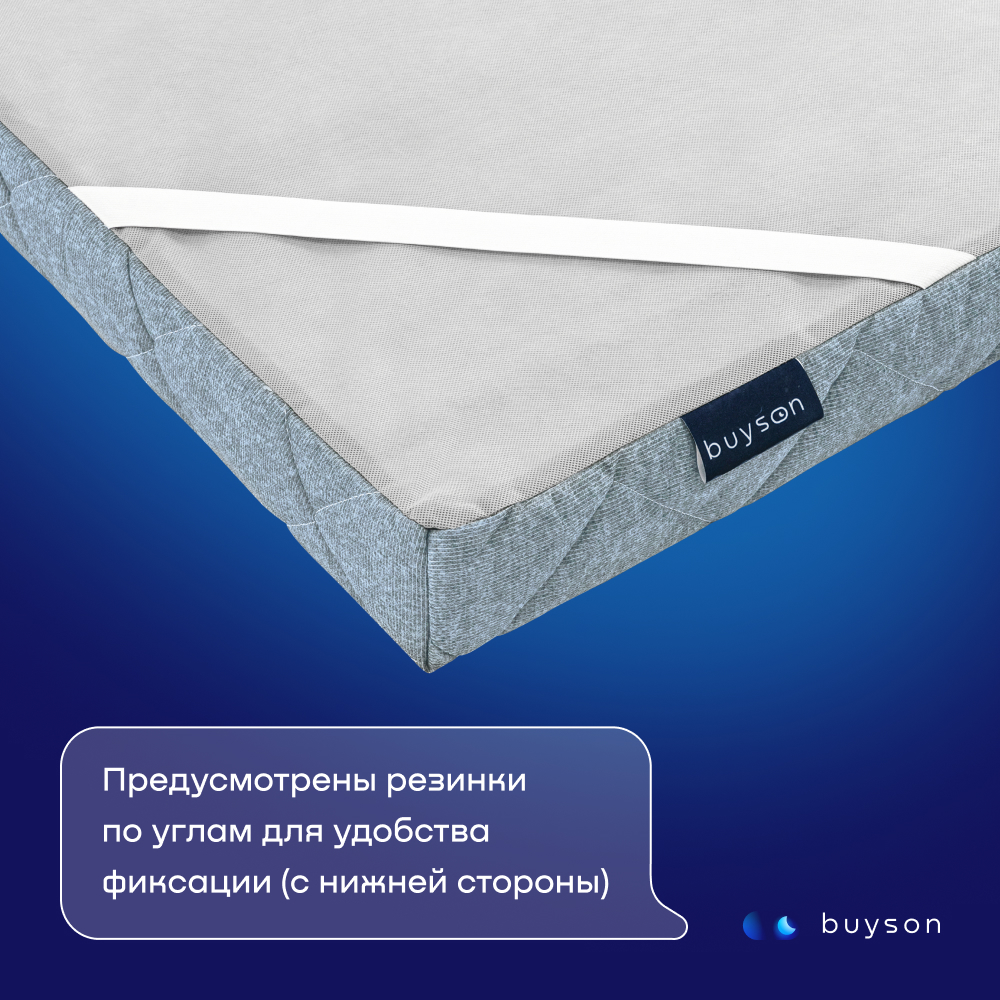 Универсальная высота 8,5 см позволяет использовать BuySimple и как отдельный матрас, и как топпер (например, на диван). Для удобства использования в качестве топпера предусмотрены резинки по углам.