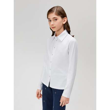 Блузка с длинным рукавом для девочки. Модель прямого силуэта и отложным воротником со стойкой изготовлена из мягкого трикотажного полотна. Застежка спереди на кнопки. Стилизуйте блузку с прямыми брюками и трикотажным бомбером (арт. 20241000001) для создания повседневного образа для учёбы. Также блузку можно сделать частью школьной формы.