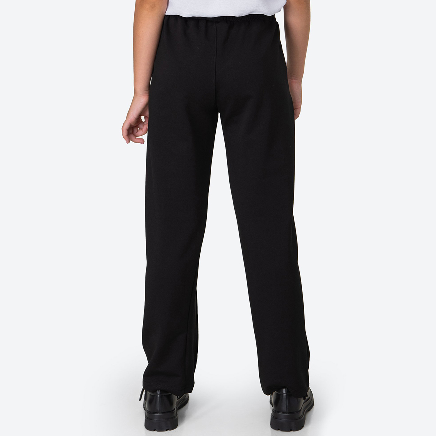 Классические брюки для девочки и девочки-подростка выполнены из футера. Детские брюки прямого кроя с высокой посадкой подарят свободу движений. Широкий пояс на эластичной резинке мягко фиксирует брюки на талии. Спереди отстрочены декоративные стрелки, а по бокам расположены практичные карманы.