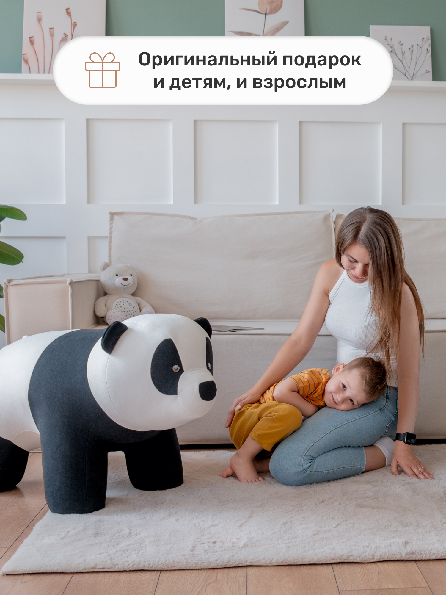 Очаровательный толстячок Панда готов поселиться в вашем доме! Он любит полакомиться бамбуковыми стеблями, а потом сладко поспать в тени листвы. Поэтому наш пуфик в виде большого медвежонка такой пухлый, плюшевый и уютный. А еще Панда – символ мира. Он подарит вашему дому покой и умиротворение. Каркас пуфа выдерживает нагрузку 100 кг, а небольшой вес изделия позволит свободно передвигать его во время уборки. Пуф выполнен из экологичного бруса хвойных пород, который безопасен для детей. Велюровая обивка имеет высокий цикл истирания, а специальное MGT-покрытие с формулой защиты от воды и грязи увеличивает его срок службы. Наполнитель из шарообразного синтетического волокна не скатывается и не мигрирует. Пуф в компактной упаковке легко транспортировать в любом авто, а сборка не потребуется. За счет перечисленных характеристик, пуф многофункционален: он может быть игрушкой для детей или подставкой для ног, выступать в качестве оригинального подарка к любому поводу или украшать интерьер.Цены в интернет-магазине могут отличаться от розничных магазинов.