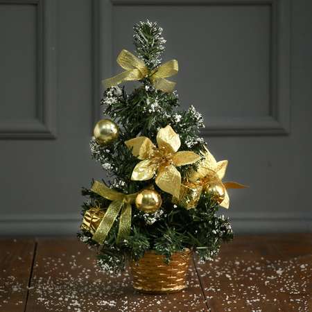 Ёлка Зимнее волшебство декор 30 см золотая пуансетия в снегу