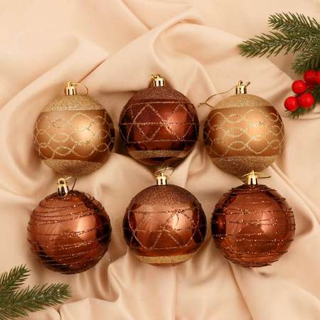 Набор шаров Зимнее волшебство пластик d-8 см 6 шт «Корнелия узоры ассорти» золотисто-коричневый