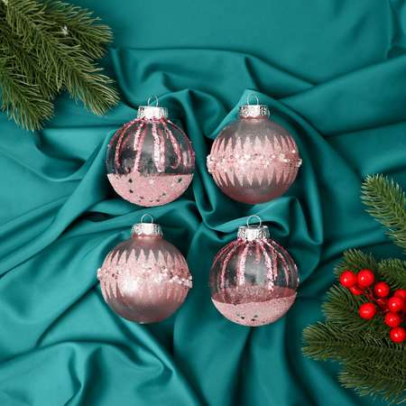 Ёлочные игрушки, шары новогодние Зимнее волшебство пластик, набор d-8 см, 4 шт "Жаклин"