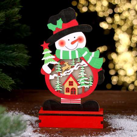 - Снеговик устойчивый, сделан из фанеры и позитивно раскрашен. Питание от двух батареек ААА.