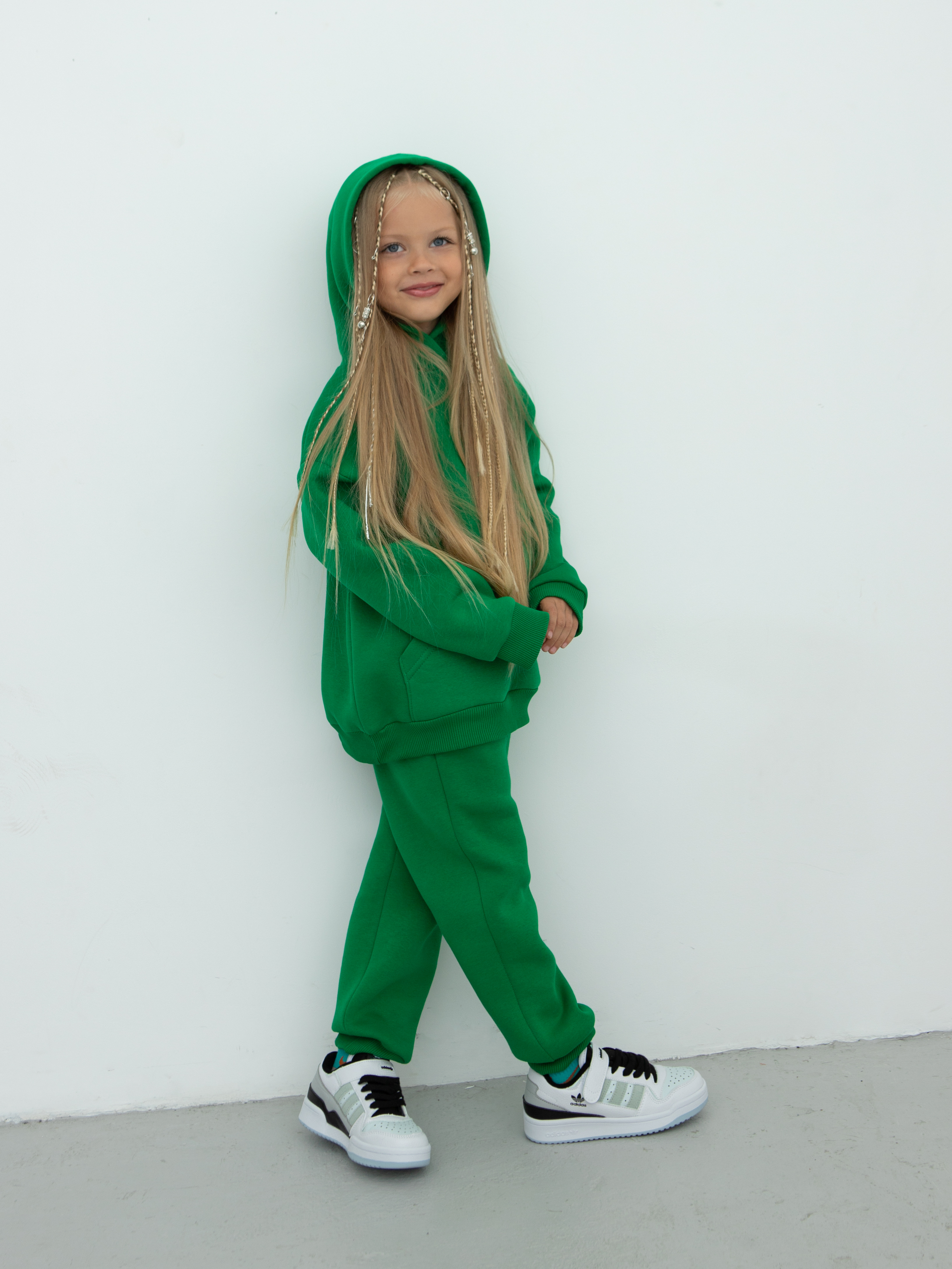 Спортивный костюм детский - это удобная и стильная одежда. Теплый детский костюм состоит из худи с длинными рукавами и брюк-джоггеров на резинке с манжетами. Детская толстовка без застежек, свободного покроя, с несъемным капюшоном, который дает дополнительную защиту от ветра и холода. Спереди карман кенгуру. Костюм детский из футера трёх-нитки с начёсом, тёплый, мягкий, уютный. Особенно приятно одевать его и в прохладные летние дни и в демисезонный период, обеспечивая оптимальную температуру и защиту от холода. Костюм утепленный можно носить как самостоятельный элемент так и поддевать под верхнюю одежду. Спортивный костюм оверсайз утепленный на флисе не сковывает движения ребёнка. Мягкие и удобные спортивки из хлопка ощущаются максимально комфортно и являются отличным выбором для активных детей, идеально подходят для различных занятий и активного образа жизни.