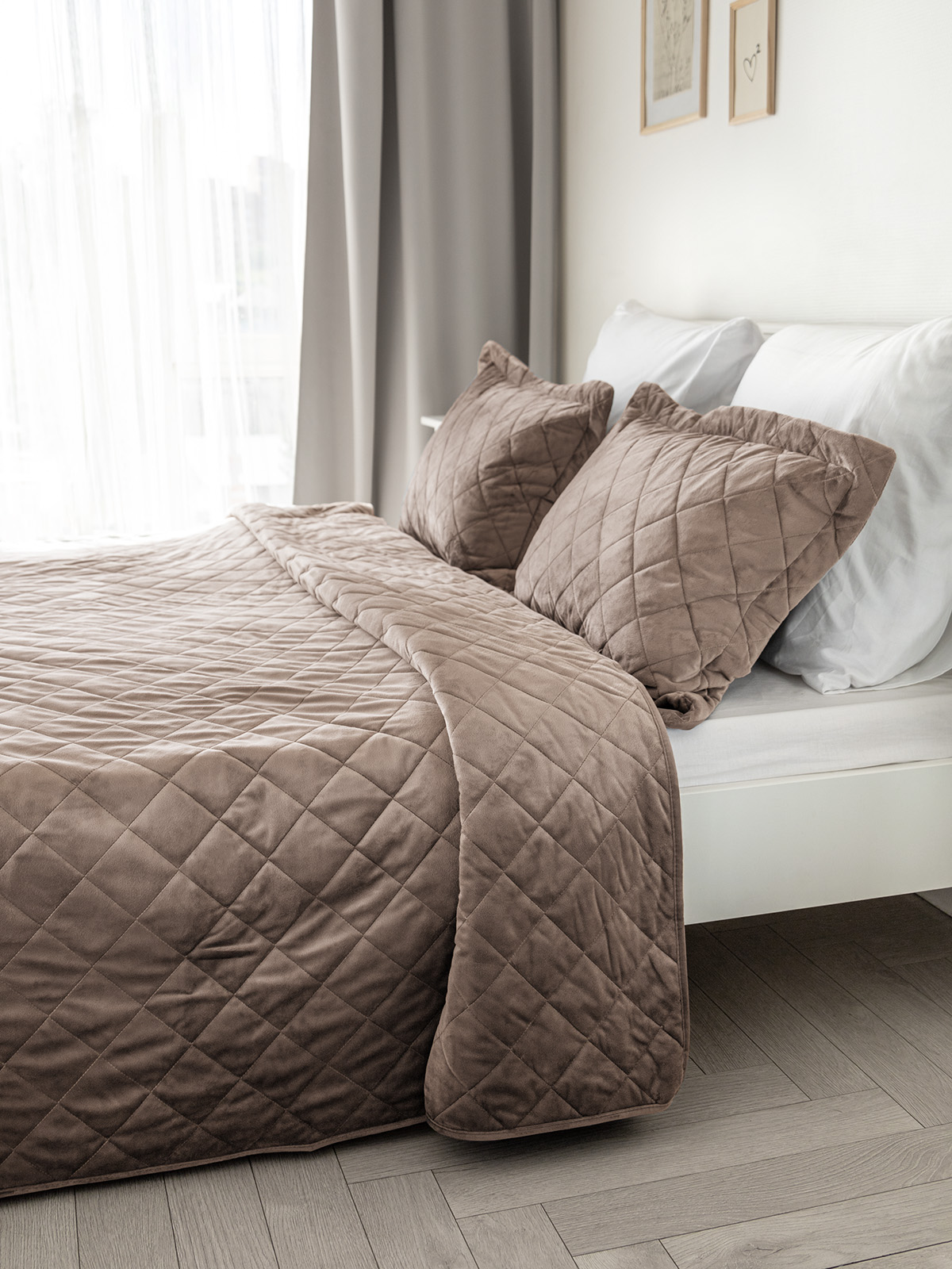 Покрывало "Велюр" прекрасно подходит для ежедневного украшения Вашей спальни. Отлично защитит постельное белье от любых внешних загрязнений, подойдёт к любому интерьеру. Велюровое покрывало изготовлено с применением современной технологии безниточной стёжки. По этой технологии наполнитель соединяется с тканью без применения ниток и надежно прикрепляется к ней. Это делает покрывало несминаемым и износостойким, лёгким, невесомым и воздухопроницаемым. Оно не даёт усадки после многократной стирки и не подвержено миграции волокон. Рекомендация по уходу: предусмотрена деликатная стирка, на щадящем режиме, без отбеливающих компонентов. Плотность покрывала 200 гр/м2.Цены в интернет-магазине могут отличаться от розничных магазинов.