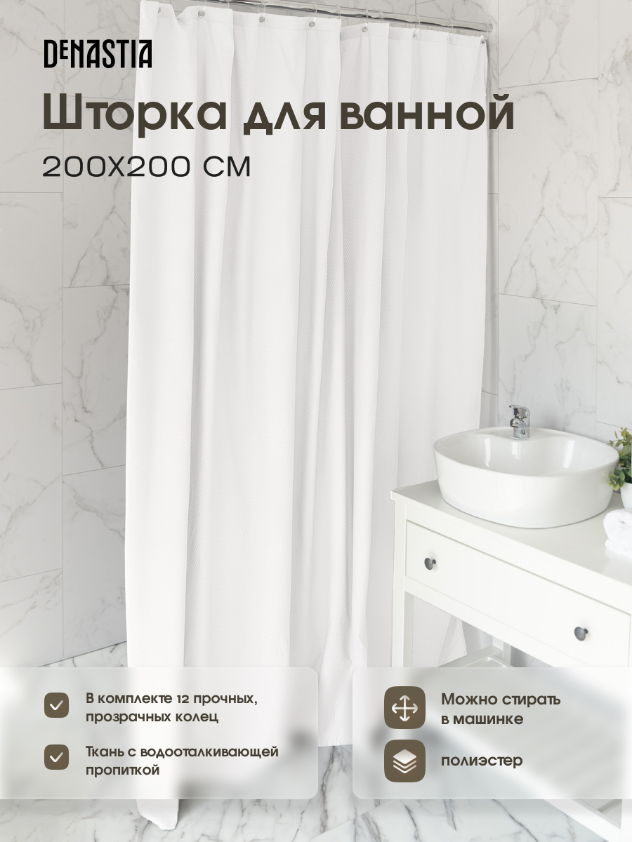 Цена на Штора для ванной DeNASTIA Эмбосс 200x200 см микрофибра белый S000128 - 1079 ₽.