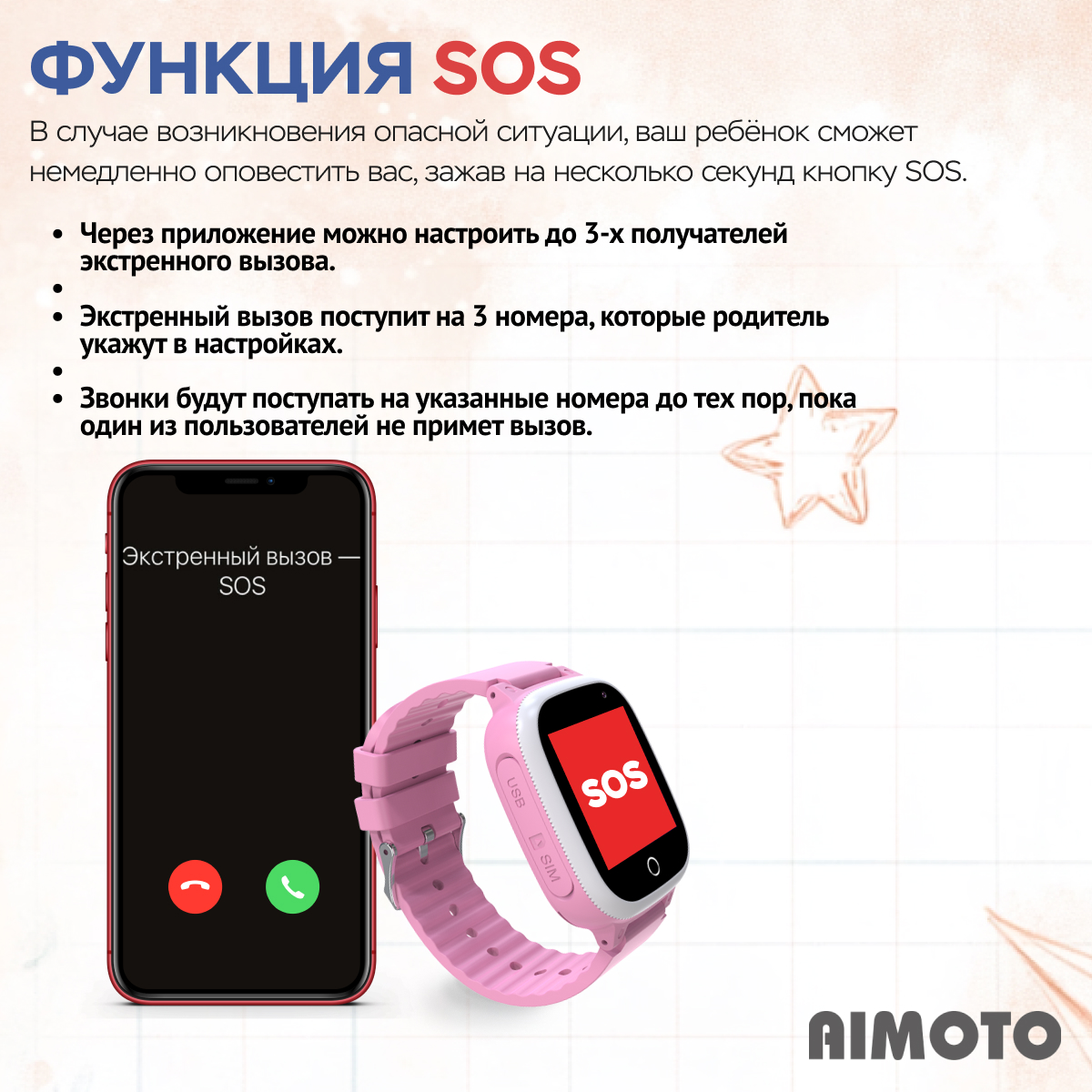 Часы-телефон Aimoto Lite - Сим-Карта в комплекте, тариф на 1 год связи уже предоплачен (далее - оплата согласно тарифу оператора). Смарт-часы Aimoto Lite - незаменимый помощник для детей и их родителей. Основные функции – входящие и исходящие звонки, кнопка SOS, голосовой чат, гео-зоны, определение местоположения ребёнка по сотовым вышкам (LBS), история перемещений, функция поиска часов. Особое внимание стоит уделить функции "Обратный звонок" – родитель, через приложение, может запросить с часов ребёнка звонок на указанный им (родителем) номер телефона. При этом, динамик в часах ребёнка будет выключен, а родитель сможет услышать что происходит вокруг. Ребёнок теперь всегда на связи, а Вам будет проще контролировать его безопасность через наше приложение (доступно для смартфонов Android и iOS). Из дополнительный и удобных опций стоит отметить: телефонная книга на 10 доверительных номеров, сенсорный экран 1,44 дюйма, будильник, фонарик и увлекательная математическая игра. Степень защиты от влаги и пыли - IP65, с часами нельзя купаться в море и бассейне. Гарантия на часы 12 месяцев - контакты техподдержки на упаковке и в гарталоне.