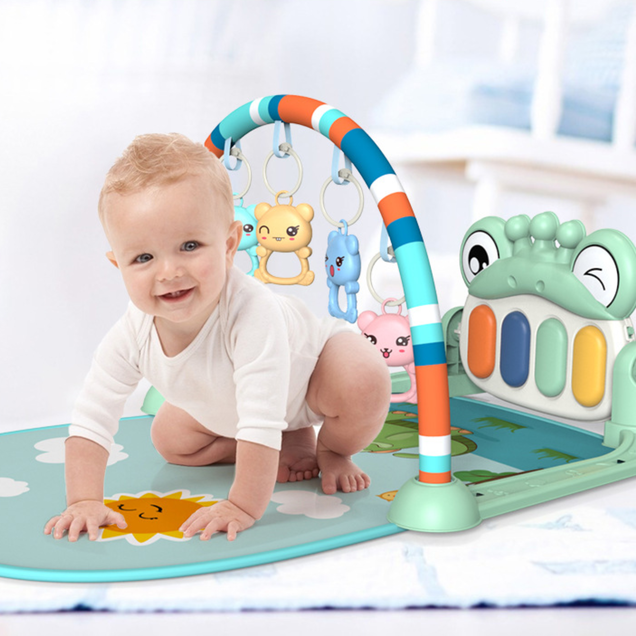 Занимательный игровой коврик с пианино. Детский коврик направлен на совершенствование двигательной системы ребенка, тренирует зрительное и тактильное восприятие любознательного малыша и предназначен для ранних этапов детского развития. Коврик оборудован 4 подвесными погремушками, безопасным зеркальцем, пианино со световыми и звуковыми эффектами. Кроха развивает мелкую моторику, физическую активность и координацию движений. Игрушки для детей легко открепляются, их также можно вешать в коляску, кроватку, они экологичные, гипоаллергенные и безопасные, материал не токсичен, без запахов. Ковер изготовлен из хлопка, легко очищается в ручную, можно стирать в машине. Пианино работает от батареек 3*1,5v класс АА (приобретаются отдельно). Ковровая дорожка отличный подарок для новорожденного и для малышей до года. Яркие расцветки и фактура тканей развивают сенсорно - моторные навыки и зрение малыша , а разные звуки , которые издает игрушка , способствуют развитию слуха вашего малыша . Размер коврика 72*58*38 см.Цены в интернет-магазине могут отличаться от розничных магазинов.