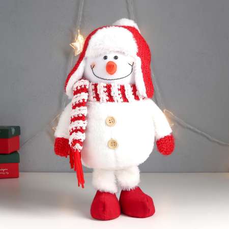 Кукла интерьерная Зимнее волшебство «Снеговик в красной шапке-ушанке с бомбошкой» 40х17х16 см