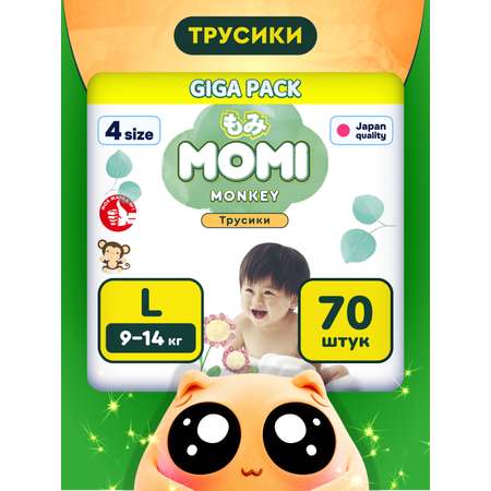 Подгузники-трусики Momi Standard/Monkey GIGA PACK L (9-14 кг). 70 шт