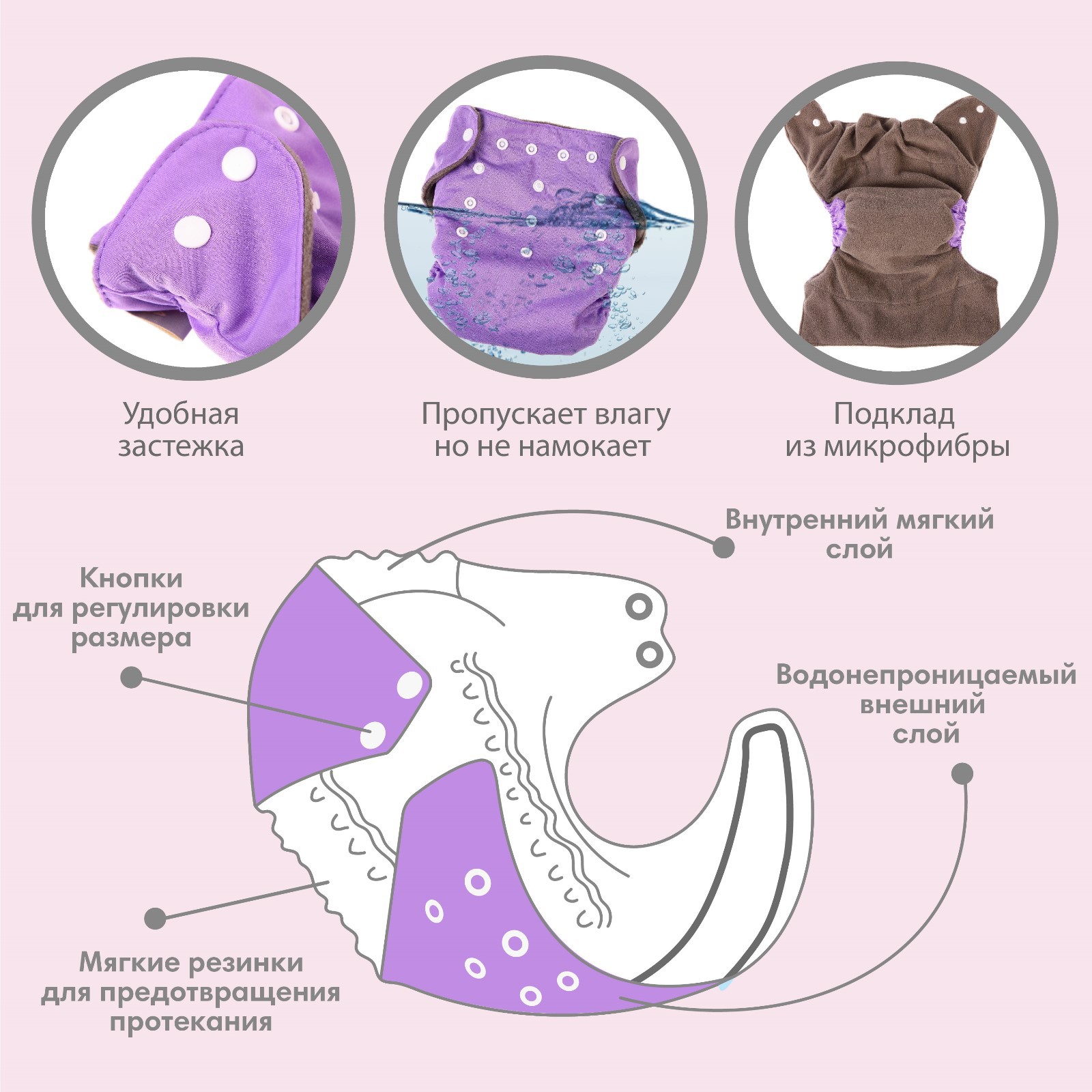 Трусики подгузник Крошка Я многоразовый. угольно бамбуковая ткань. цвет фиолетовый. от 0 36 мес.
