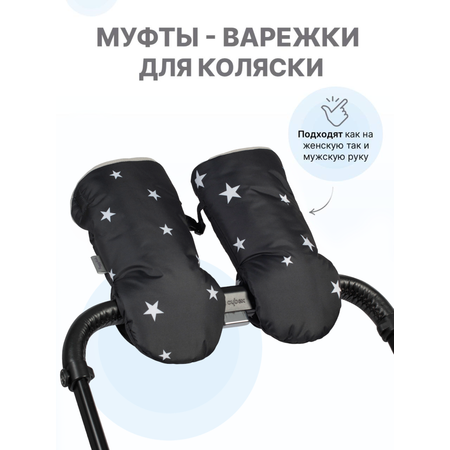 Муфты-варежки для коляски Buggykids Черный. Звезды.