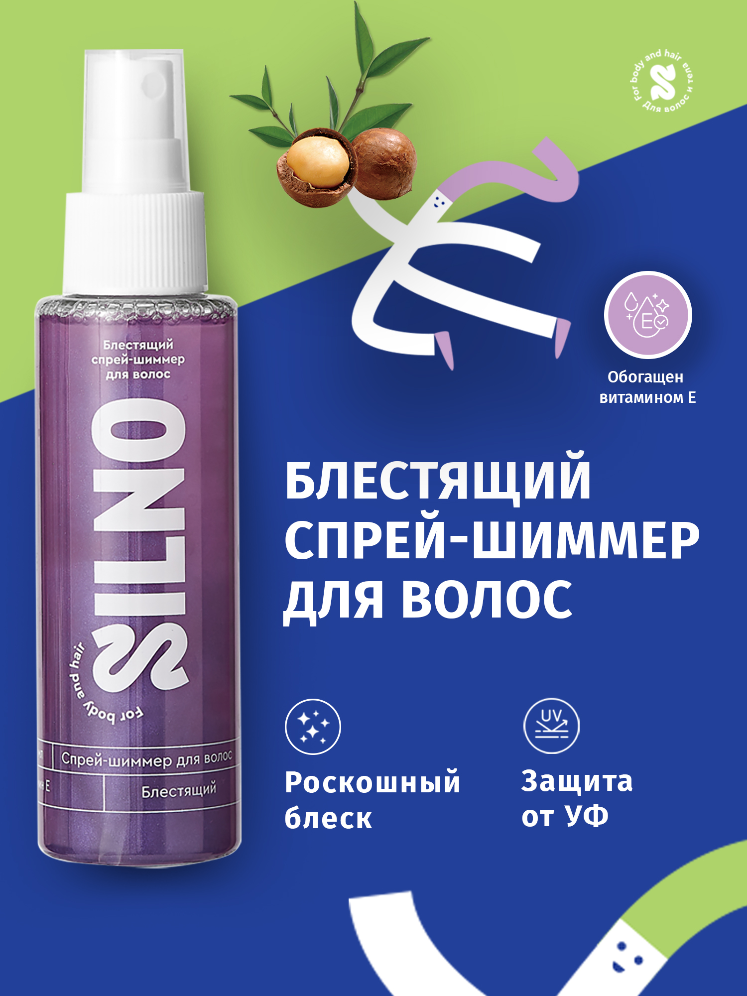 Цена на Спрей - шиммер для волос Silno Блестящий с витамином Е 110мл - 353 ₽.