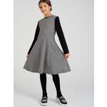 - Смотрится прилично(нет проблем с пошивом , как у платья с воротничком(воротник не скругленный, а углами и это делает вид неряшливым) Чёрный цвет достаточно насыщенный, поэтому платье смотрится довольно выразительно(в сравнении с тем же платьем с белым воротничком) Качество ткани нас устроило. Для нас- слегка боьшемерит, на вырост хорошо.